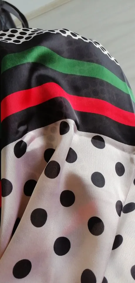 Хороший шарф, но не шелк, полиэстер. Цвет не такой яркий, намного бледнее чем на оригинальном фото.