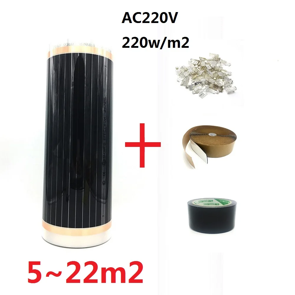 Электрический напольный теплый коврик 5 22 м2 220 Втм2 нагревательная пленка для пола с зажимами изоляционные пасты