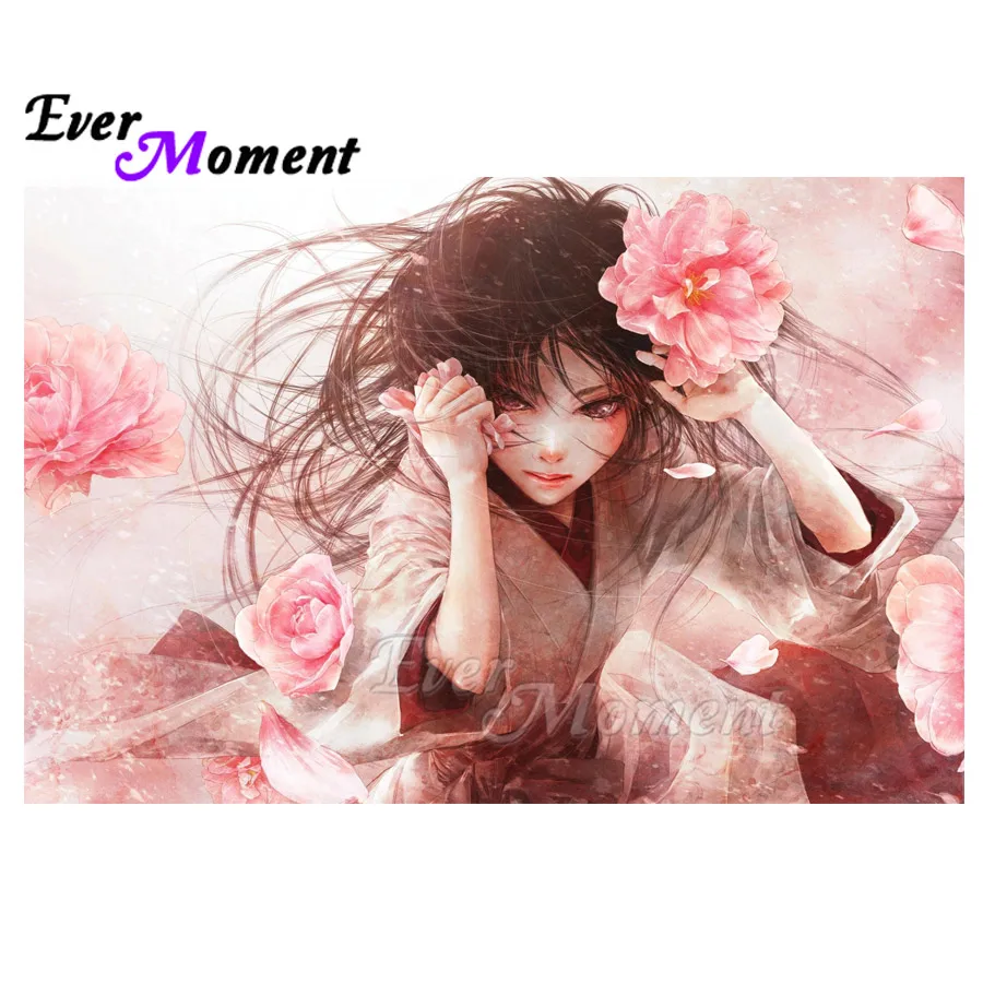 Ever Moment 5D DIY Алмазная вышивка, розовый цветок, Алмазная мозаи...