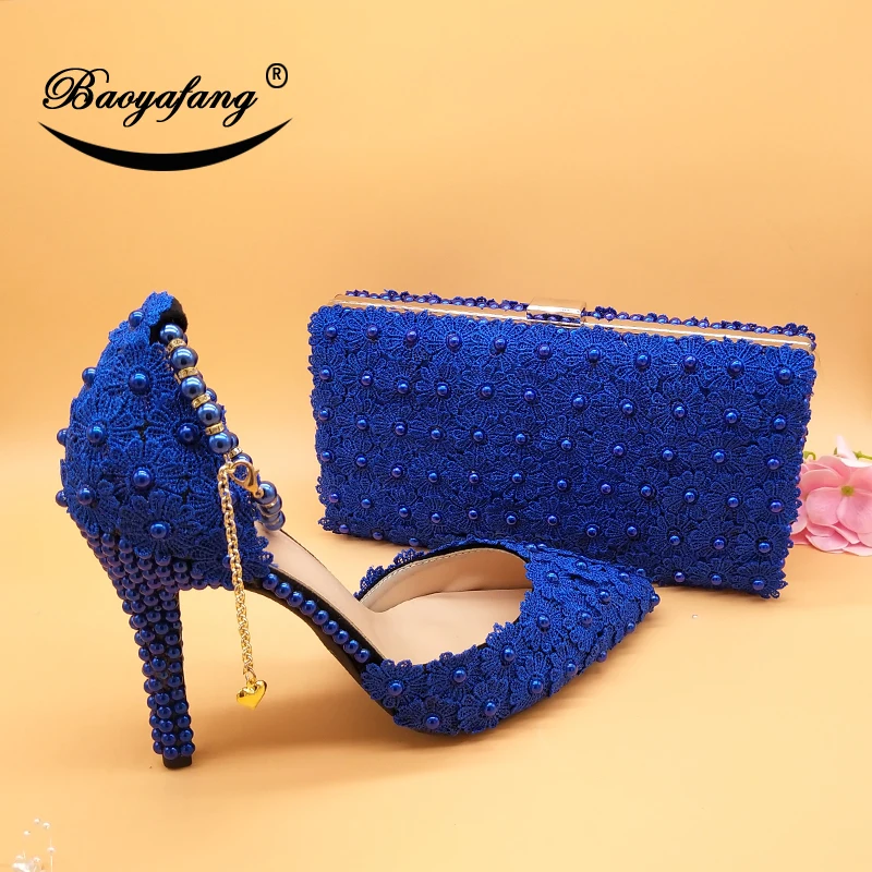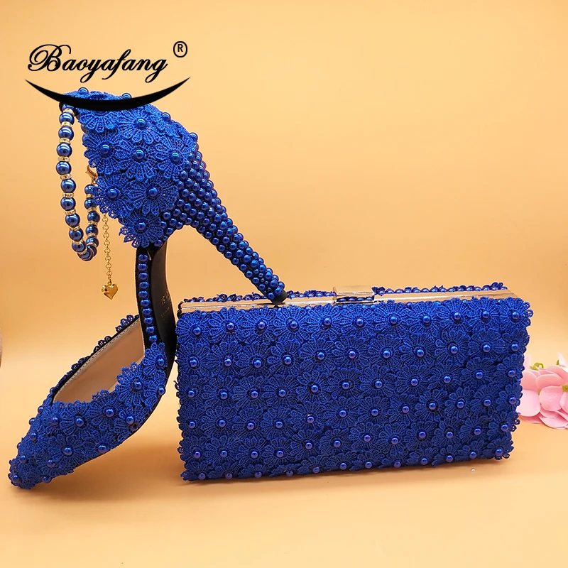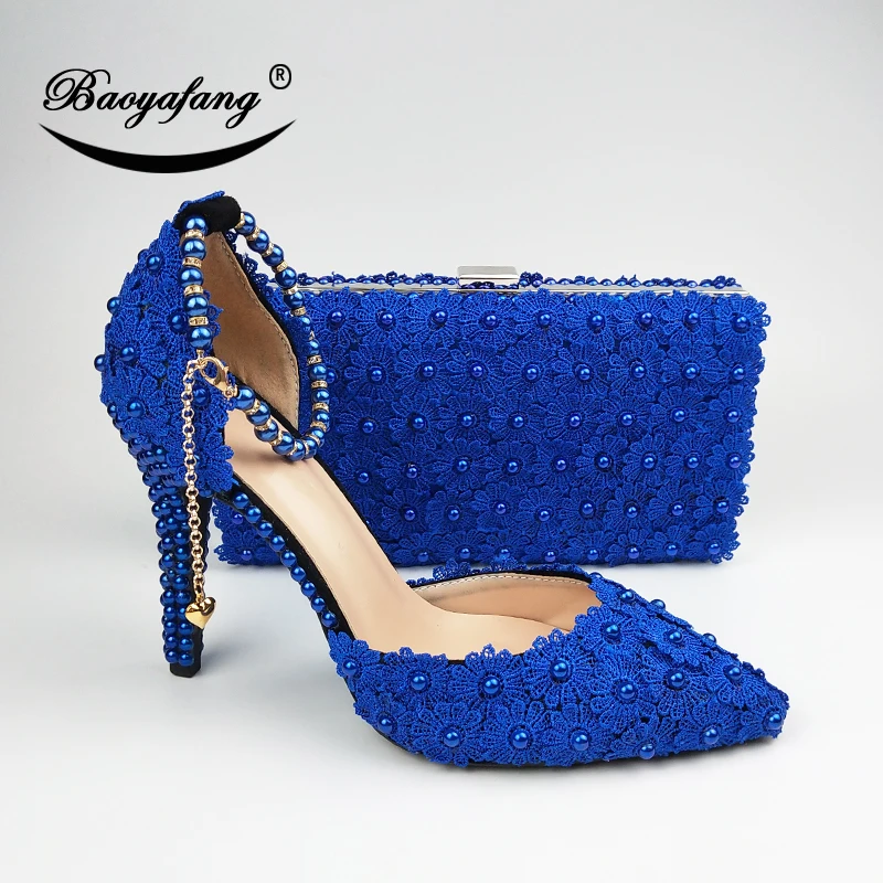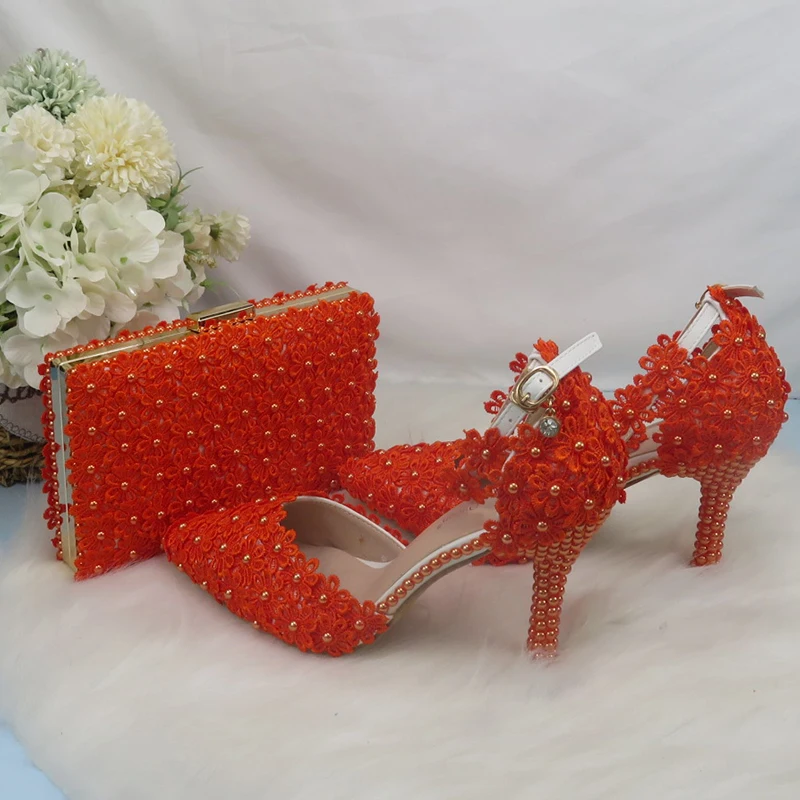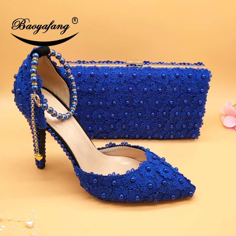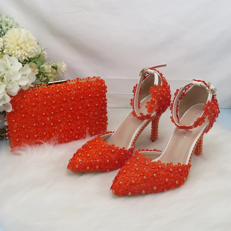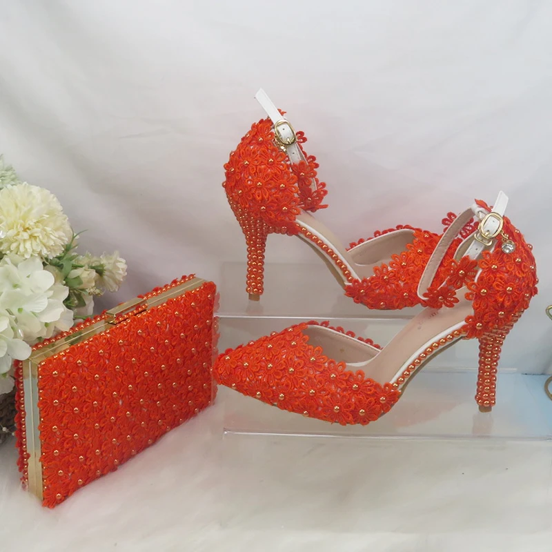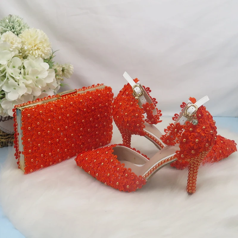 Белые свадебные туфли с цветочным кружевом и сумочкой в комплекте, женские вечерние туфли на высоком каблуке с острым носком и ремешком на щиколотке и сумочка в комплекте, туфли с жемчугом