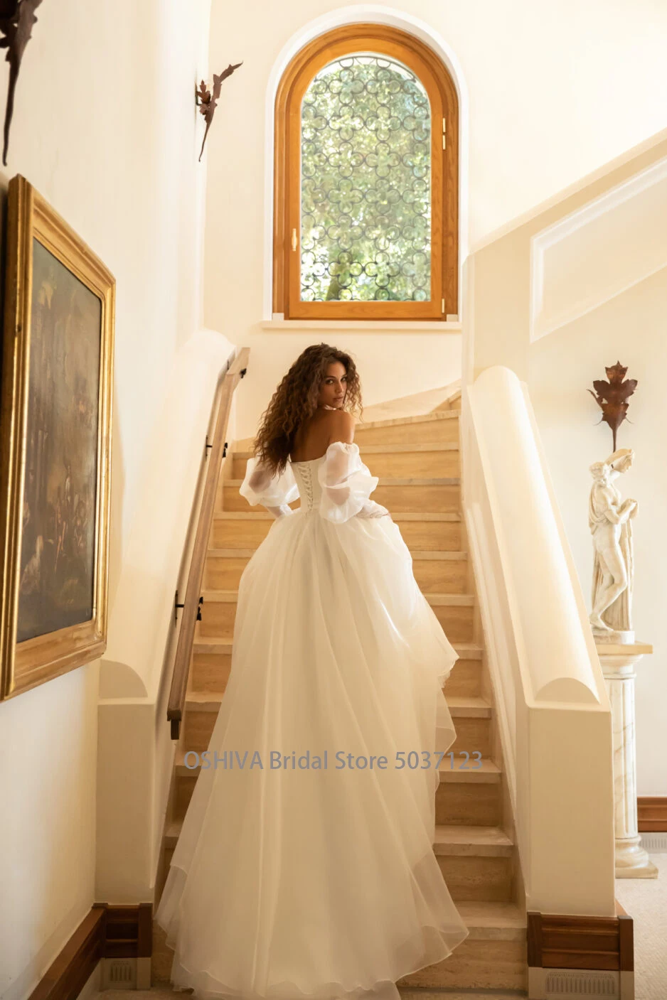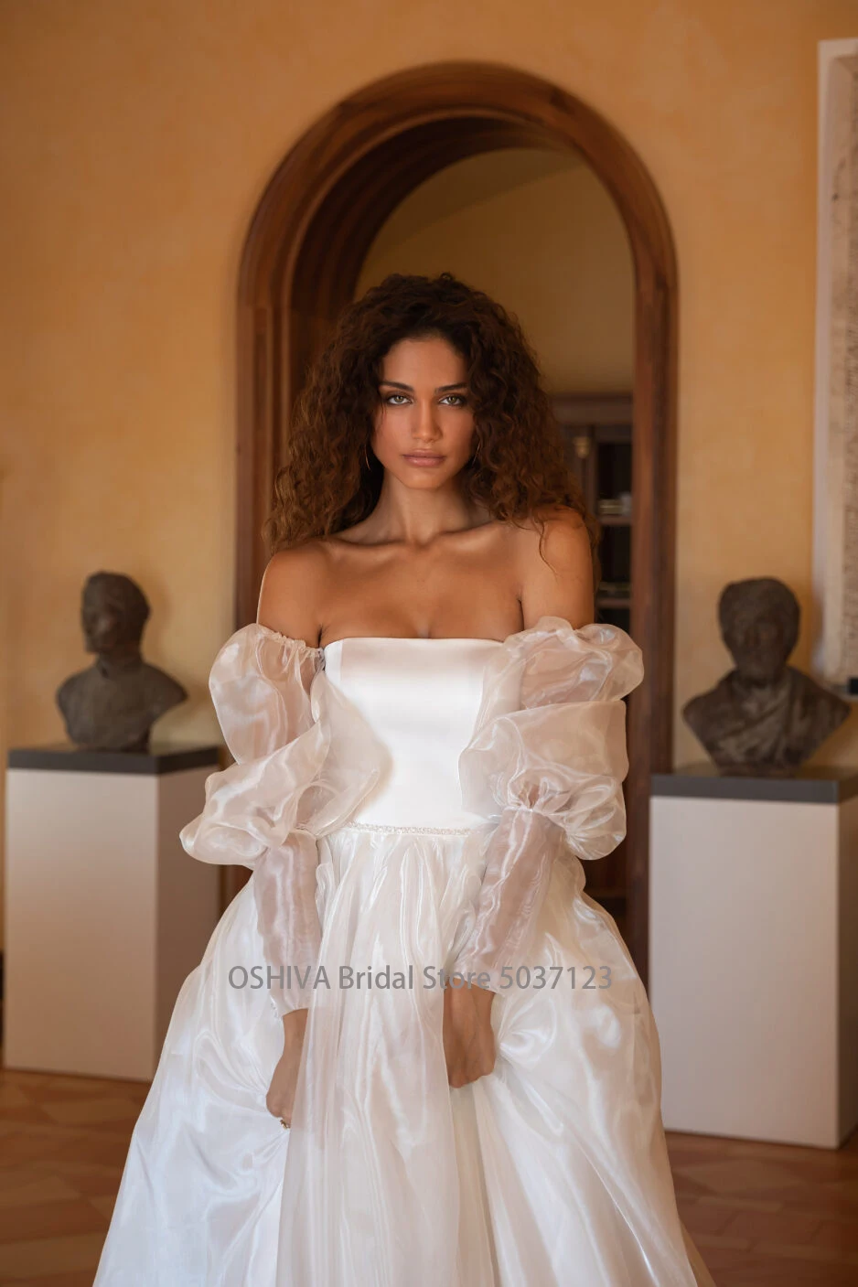 Соблазнительные Свадебные платья из органзы 2022, простые свадебные платья а-силуэта без бретелек со съемными буфами и длинными рукавами для невесты