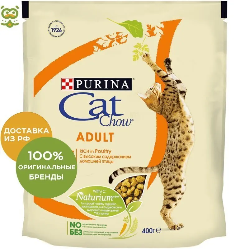 Корм Cat Chow Adult для взрослых кошек, Домашняя птица, 4*400 г.