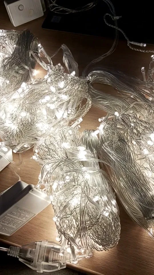Пришла гирлянда довольно быстро. До Эстонии ок. 3 недель. Провод прозрачный. Есть сменные режимы, но они как то не фиксируются (насколько я поняла, а просто друг друга сменяют по умолчанию). Есть соединительная розетка - можно соединить несколько гирлянд в длину. Но у меня есть серьезные сомнения про их IP. Лично я думаю, что они не out-door, а для в внутренних помещений. Ну попробуем конечно в пакет замотать коробочку... посмотрим...
