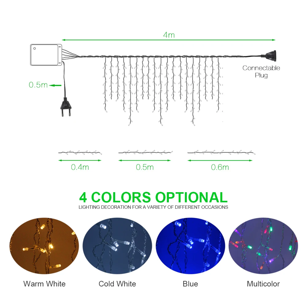 4 м сказочная гирлянда светодиодный сосулька струнные огни AC 220 В 110 В наружные Новогодние рождественские украшения для дома сада праздничное освещение