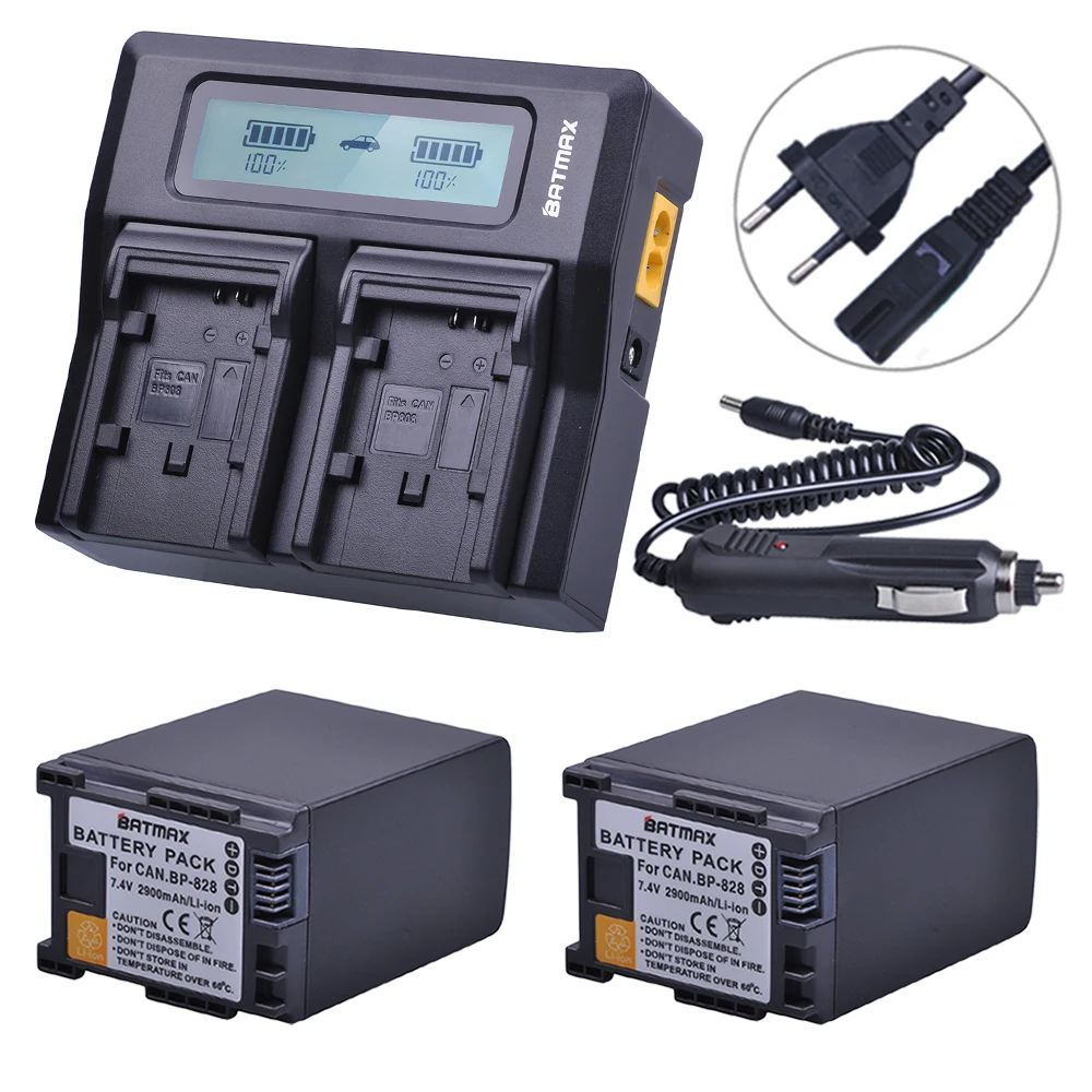 2шт 2900mAh BP-828 BP828 литий-ионная батарея камеры + LCD быстрое двойное зарядное устройство для Canon VIXIA GX10, XF400, XF405 HFG20, HFG30, HFG40, HFM41, HFM400, HFS21, HFS30
