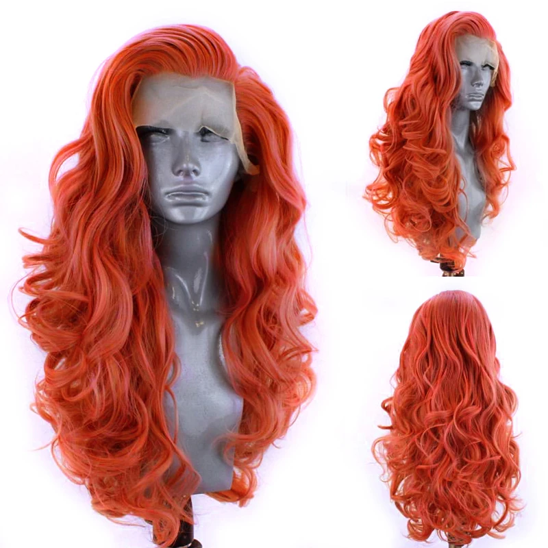 Парик харизма с длинными объемными волнами, женские парики из синтетических волокон, термостойкие волосы, волосы оранжевого, красного цвета, парик для косплея