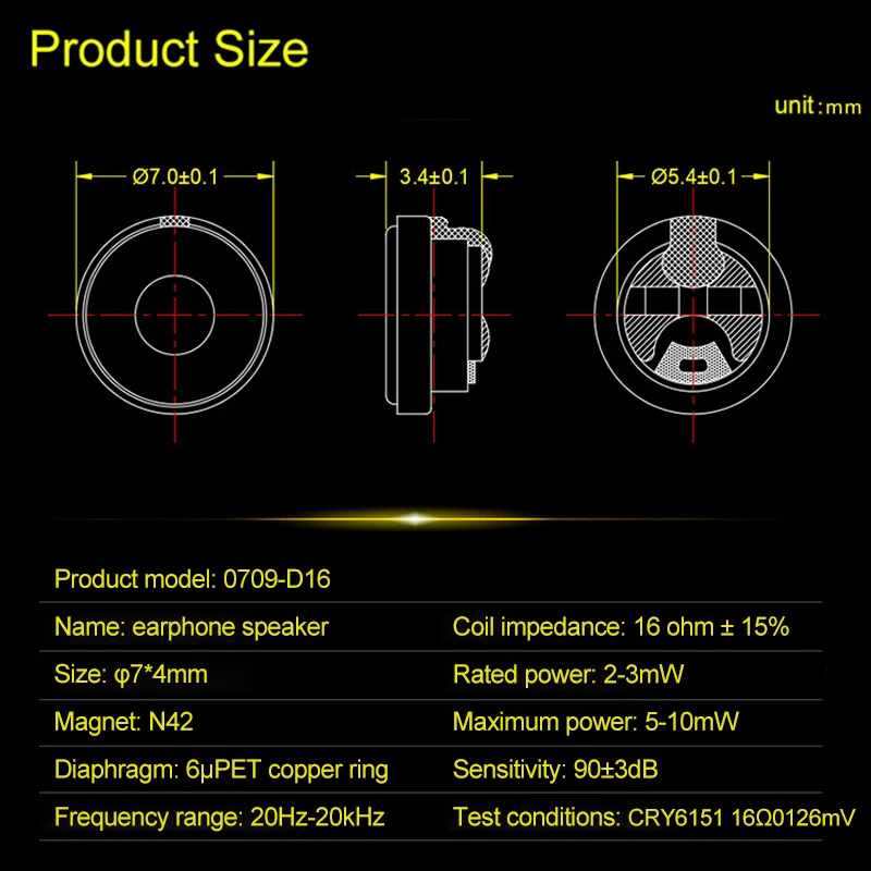 Множество диафрагм материала, таких как ПЭТ, пей, Пэк, ручка, композитная пленка, титановая пленка. Сделайте музыку динамичной, с четкой вибрацией напряжения и эластичности, достаточно, чтобы завоевать ваши волнующие уши.
