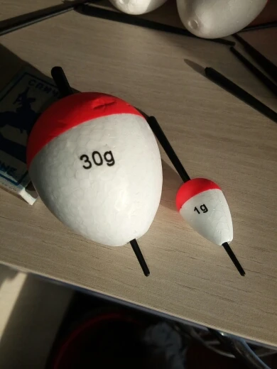 Готовлюсь к летней рыбалке. Заказал пенопластовые поплавки 5 штук- по 30 грамм (реально мощные поплавки, как раз на щуку) и 5 штук - по 1 грамму ( эти можно на маленьких рыбешек, и для летней и для зимней рыбалки). Пришли хорошо упакованные, без повреждений. За такую цену, да ещё превосходного качества. Штырьки в поплавки - из пластика, если даже потеряются то можно вместо них веточку любую воткнуть. Дошло за 23 дня вместе с другими товарами. Трек номер отслеживался.