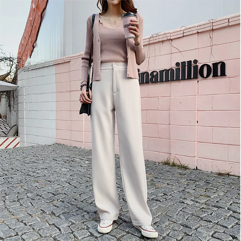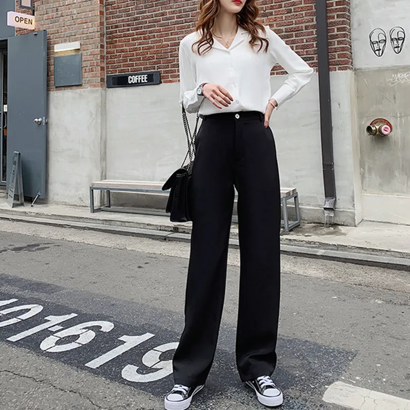 Женские широкие брюки HziriP, элегантные однотонные брюки с высокой талией для офиса и работы, 2019