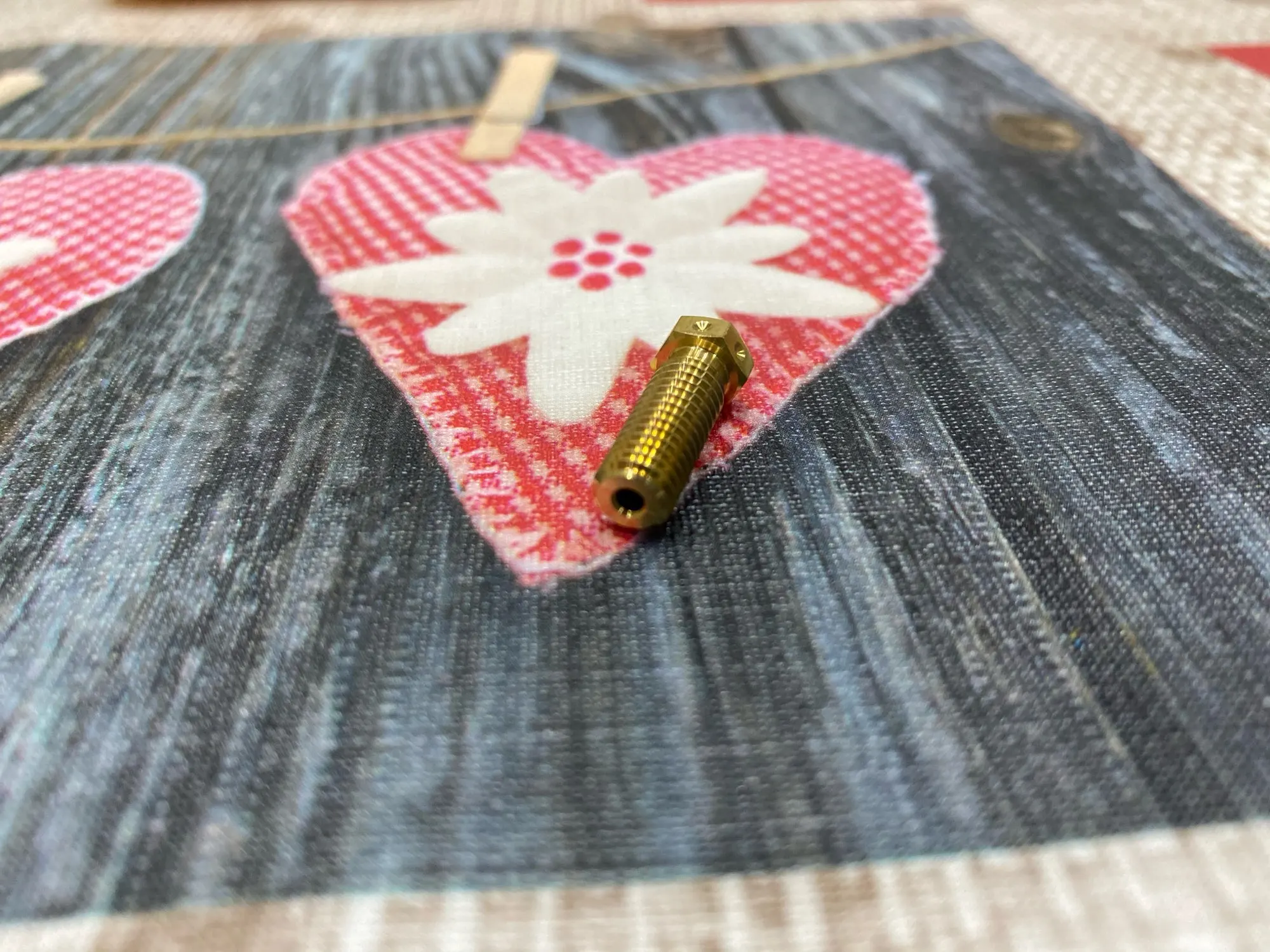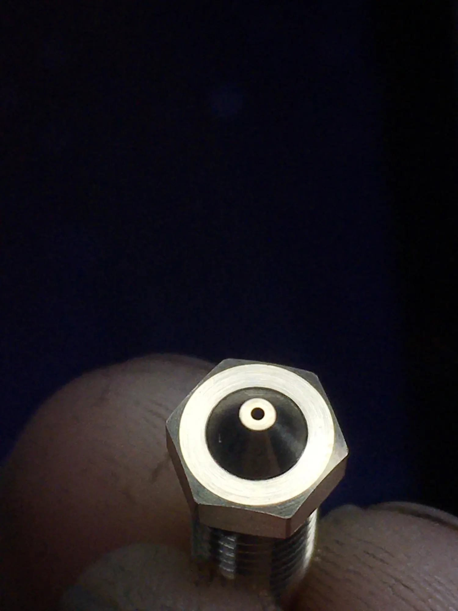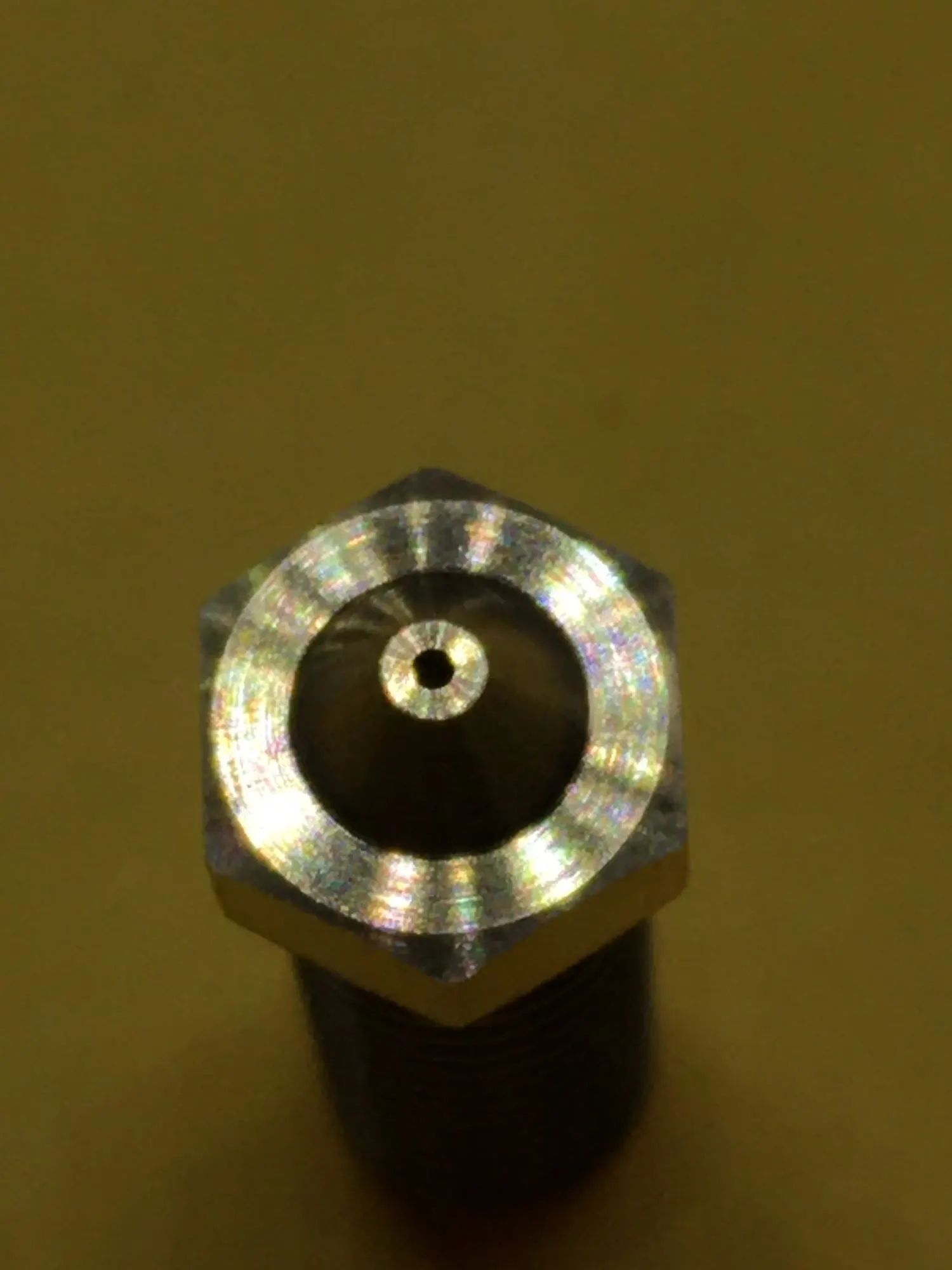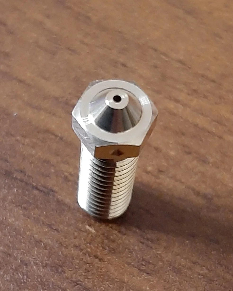 Отличное сопло, внутри чистое и хорошо обработано, диаметр ровно 0.4 , никаких забоин и вмятин на сопле нет.