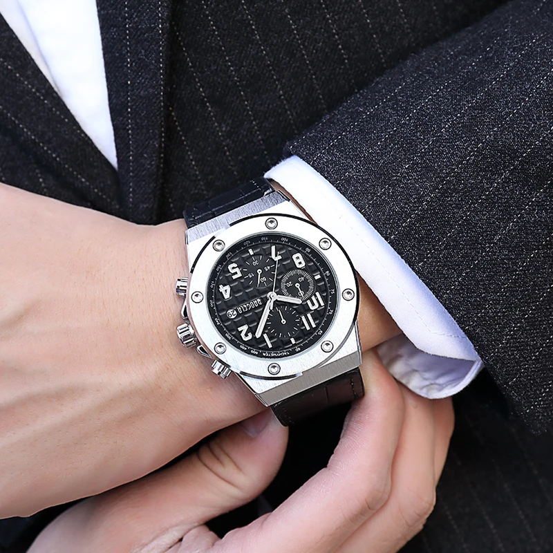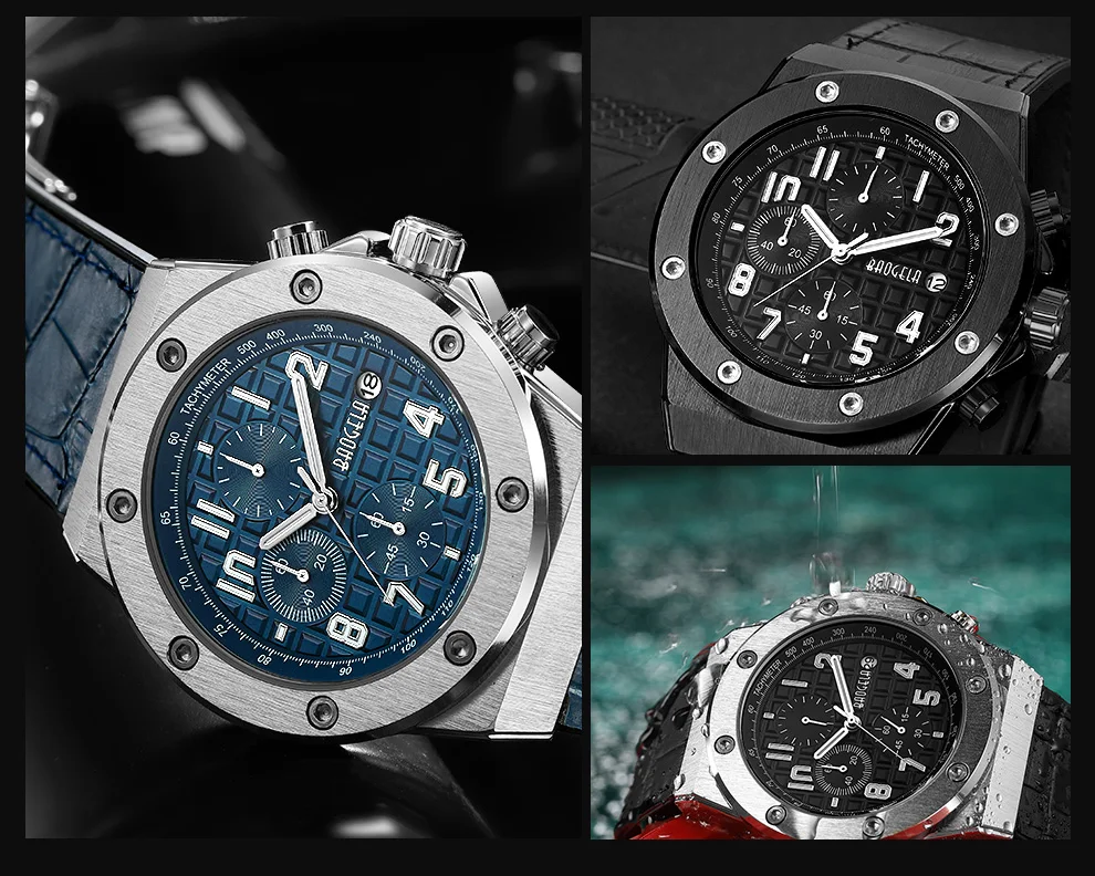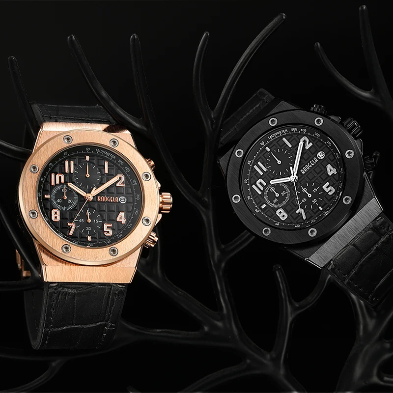 Мужские кварцевые часы с хронографом BAOGELA, новинка 2021, водонепроницаемые спортивные повседневные наручные часы, мужские часы с кожаным ремешком, часы розового и черного цвета 1805