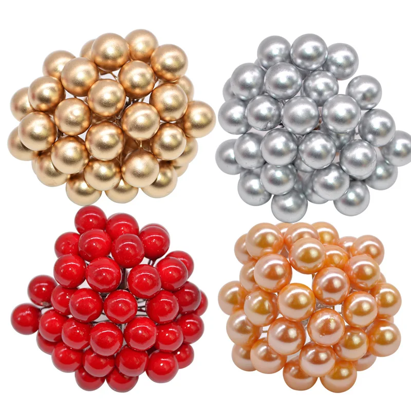 50 шт., 12 мм, золотые жемчужины, пластиковые тычинки, маленькие ягоды, вишня для украшения свадебной вечеринки, дня рождения, Искусственная елка, упаковка в подарочную коробку
