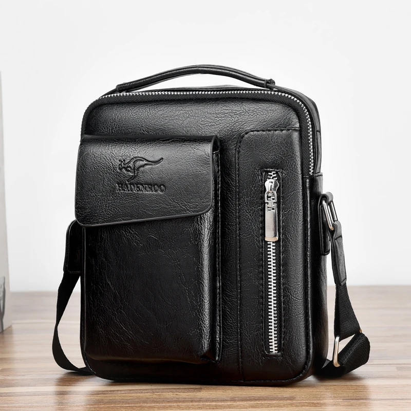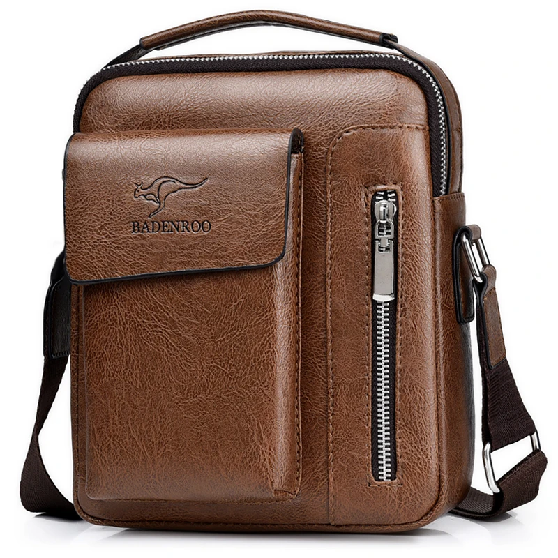 Сумка-мессенджер мужская кожаная, коричневая, с верхней ручкой