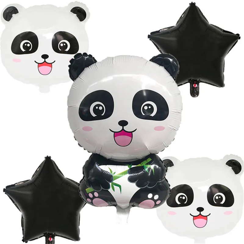 Милые панды фольги шары животные принадлежности для тематической вечеринки Дети День рождения одноразовый набор посуды воздушный шар баннер соломинки украшения