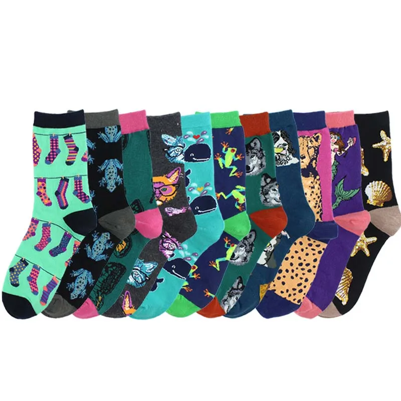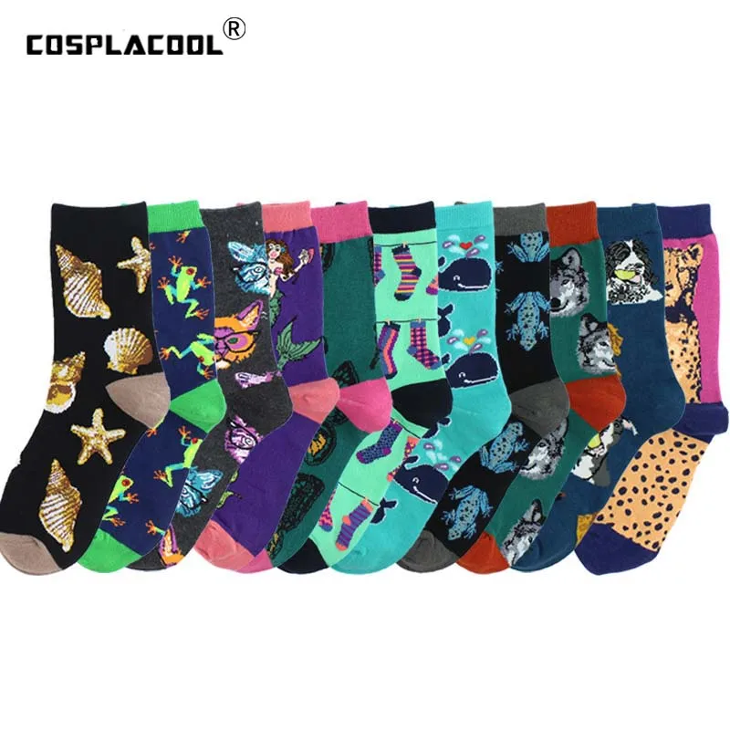 COSPLACOOL/крутые забавные носки с животными; Хлопковые носки с изображением собаки русалки; Женские носки в 12 стилях; Новинка; Женские носки Calcetines Mujer