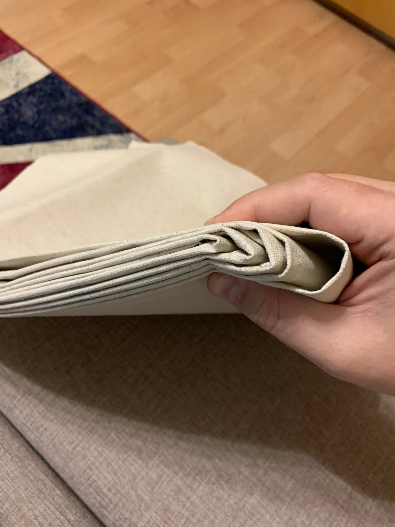 Купила холст размером 68×5м. По условиям доставки, он был сложен. В рулоне отправляются до 58см. Сложен аккуратно, надеюсь складки расправятся во время натяжки холста. Холст хлопковый, не лён. Покупкой осталась довольна.