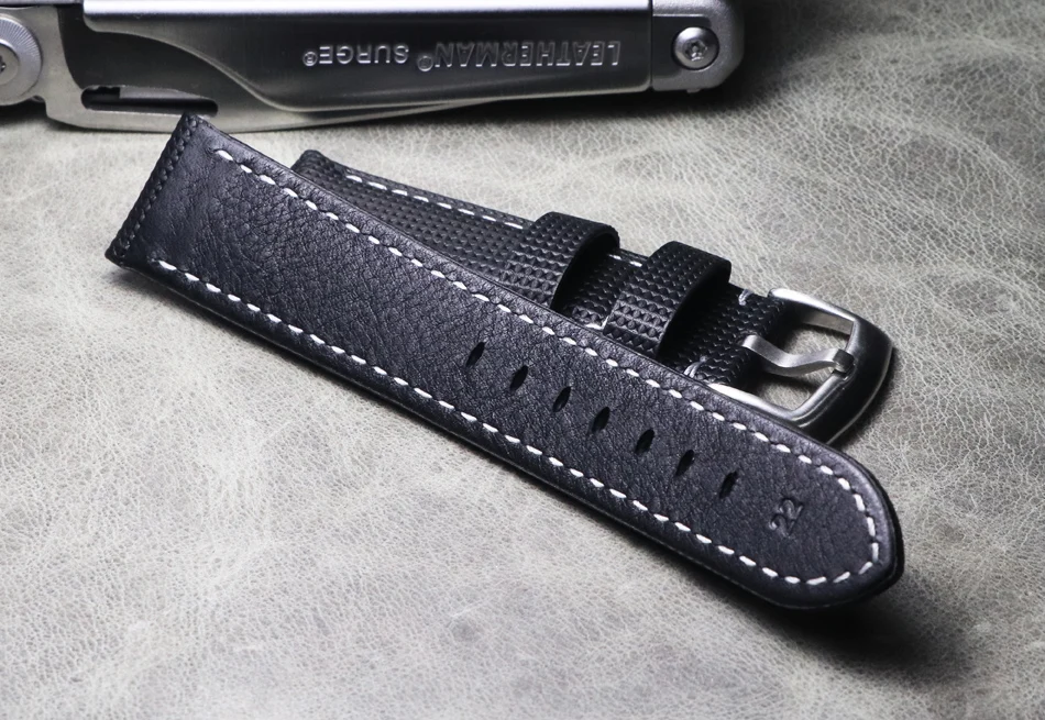 Высококачественный Итальянский черный кожаный ремешок ручной работы...