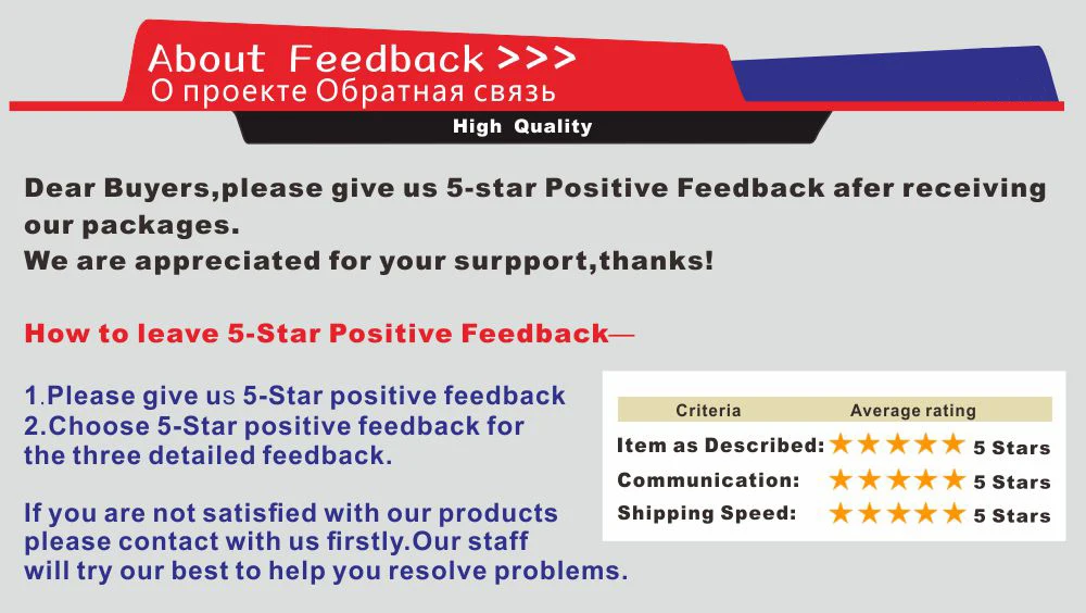 Политика возврата и обмена, американский стандарт ----Все наши товары будут проверены и упакованы в хорошем состоянии перед отправкой, если вы не удовлетворены товаром, вы можете вернуть его нам в первоначальном состоянии в течение 7 дней Получения для возврата денег или обмена. Перед возвратом товара, пожалуйста, свяжитесь с нами для получения подробной инструкции по возврату. Мы вернем вам деньги после получения возвращенных товаров. Покупатель оплачивает стоимость доставки за возврат Предметы.