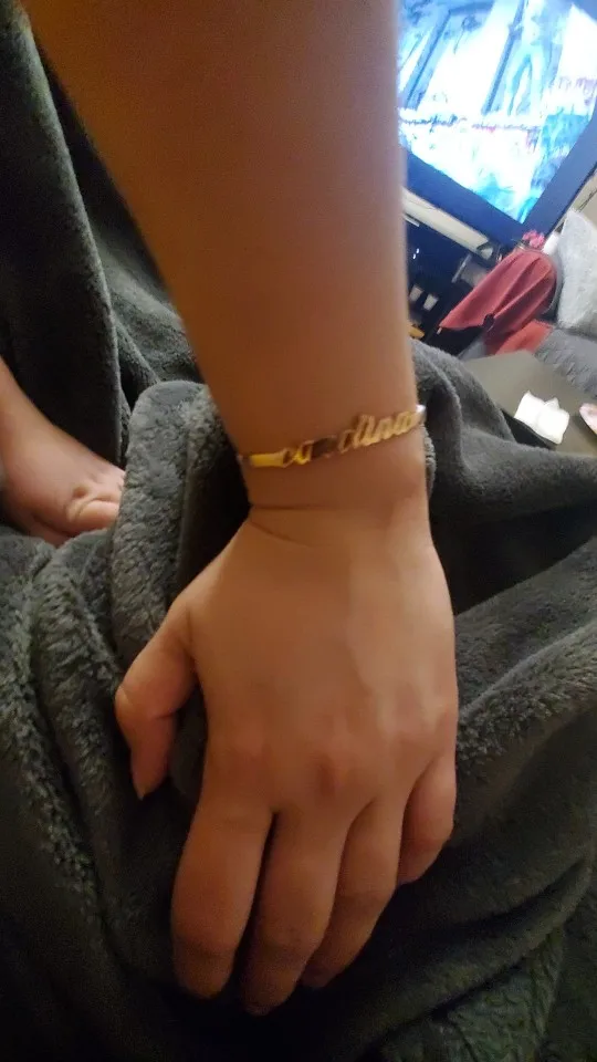 Очень хороший браслет, чтобы вовремя увидеть, если он не потеряет свой цвет, быстрая доставка, продавец очень отзывчив и обеспечивает хорошую каллиграфию и написание имени! Я рекомендую, спасибо, друг⭐⭐⭐⭐⭐