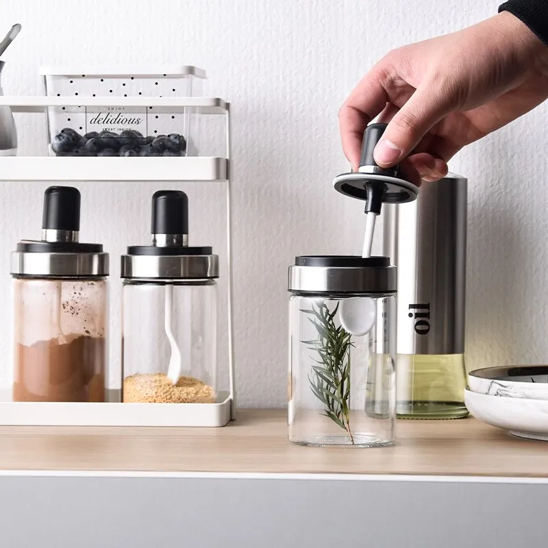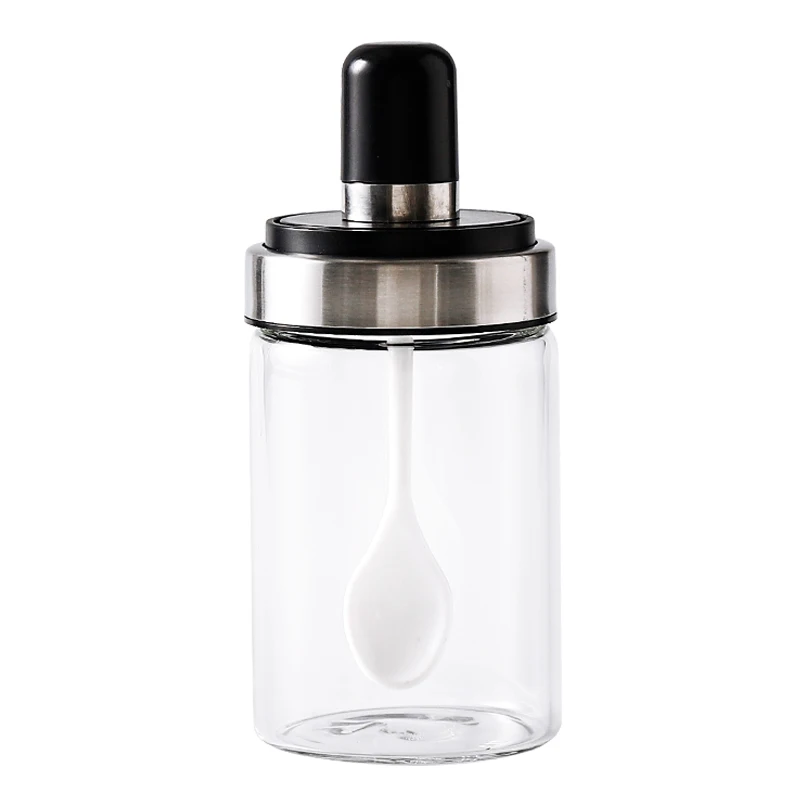 Герметичные стеклянные банки для хранения с ложкой, бутылки для приправ, масла, банки для специй, контейнер для соуса контейнер для соли, кухонный Органайзер, инструменты