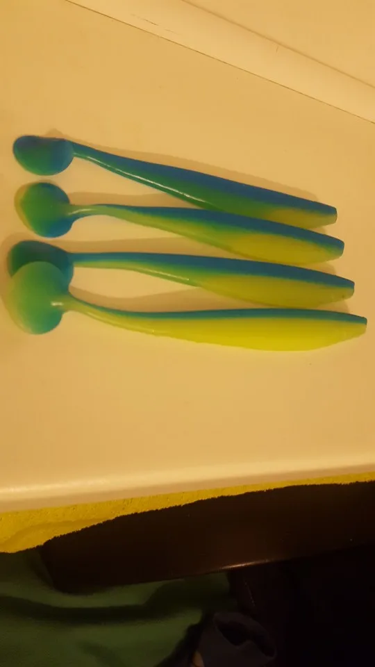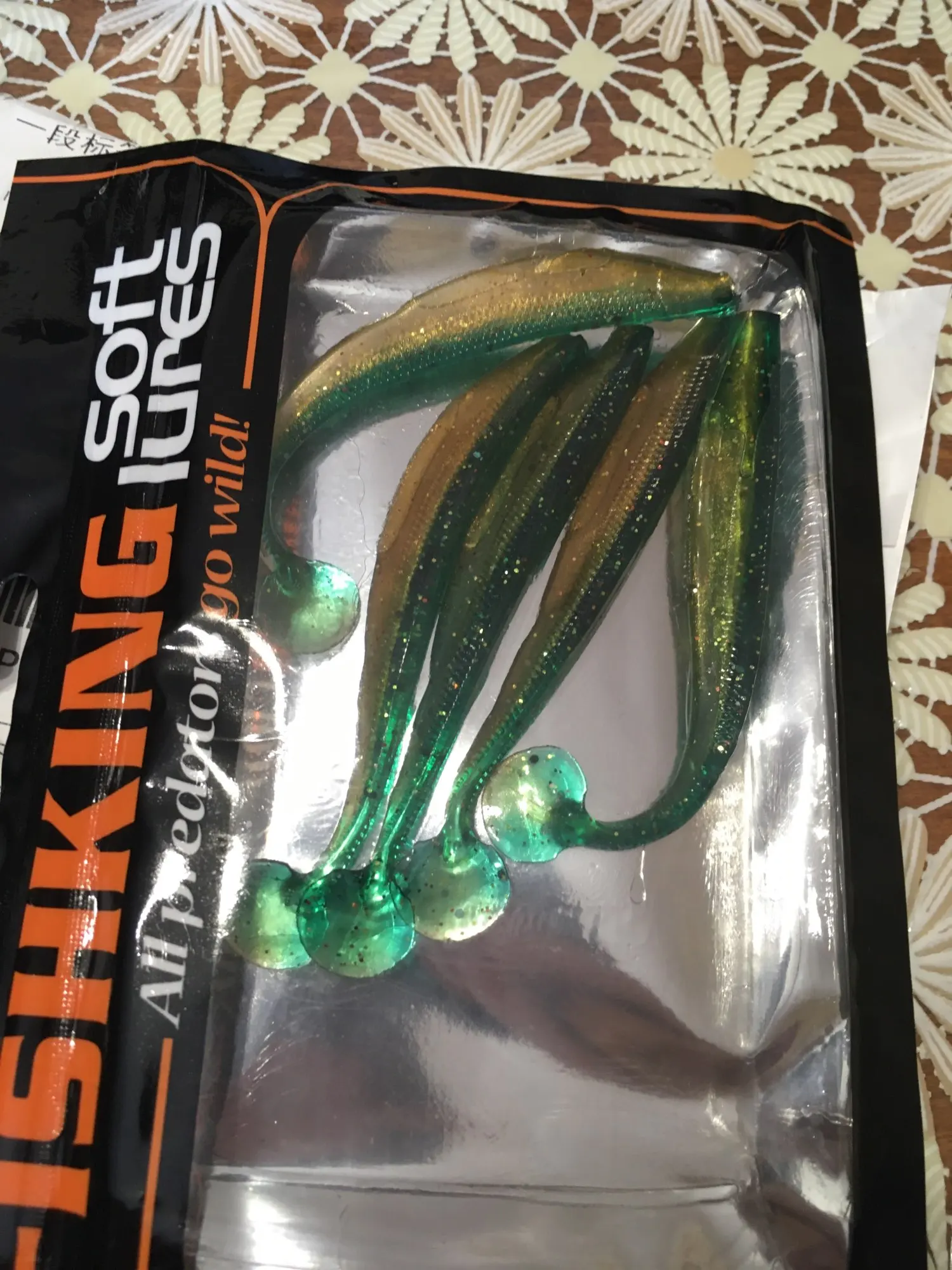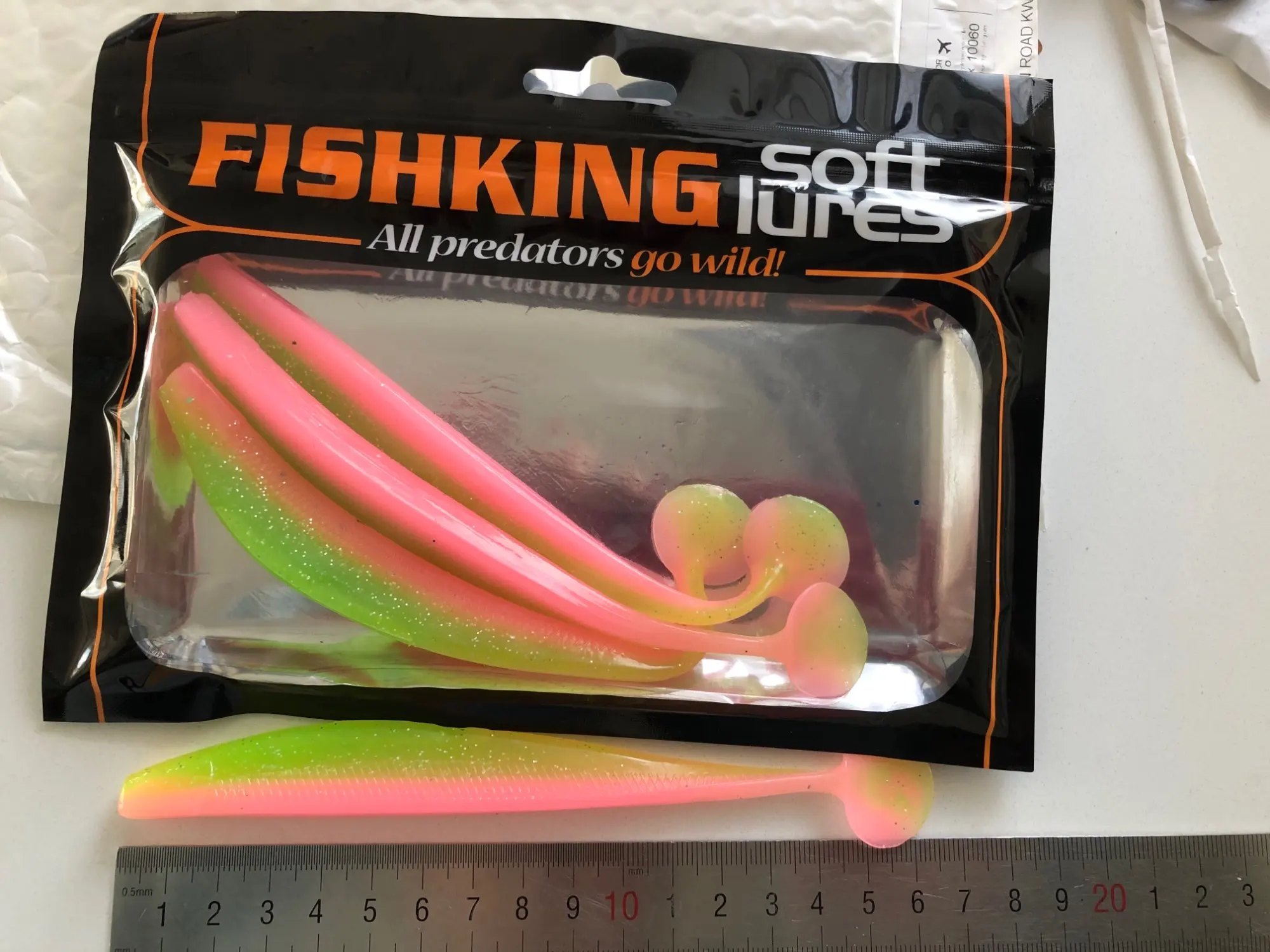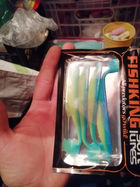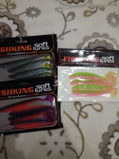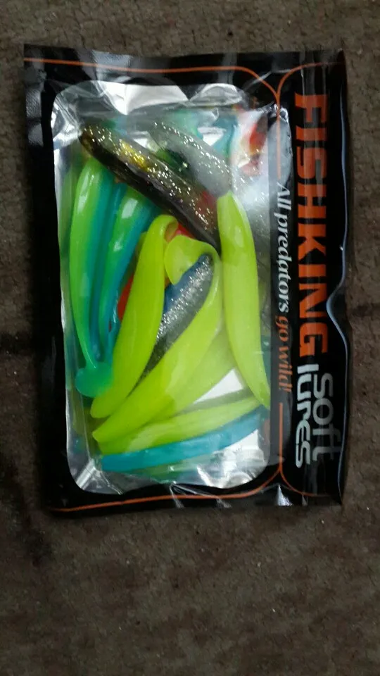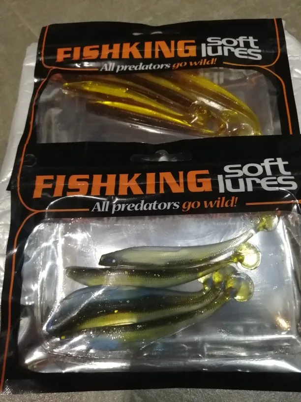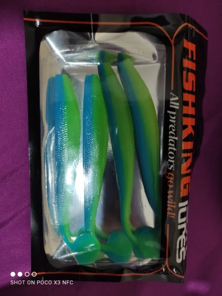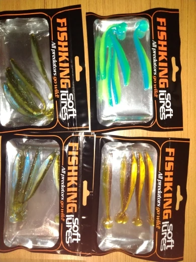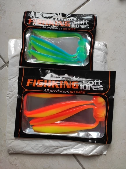 С момента заказа до получения прошло 23 дня, посылка после прохождения таможни не отслуживалась. Индивидуальные пакетики, в которых находятся приманки, все измазаны маслом(легко отмылись тёплой водой с фейри). Сами приманки в этом же масле с рыбным запахом. Силикон средней жесткости, даже ближе к мягкому, тело рыбок тонкое, прогонистое. Короче, нужно проверять на рыбе)).