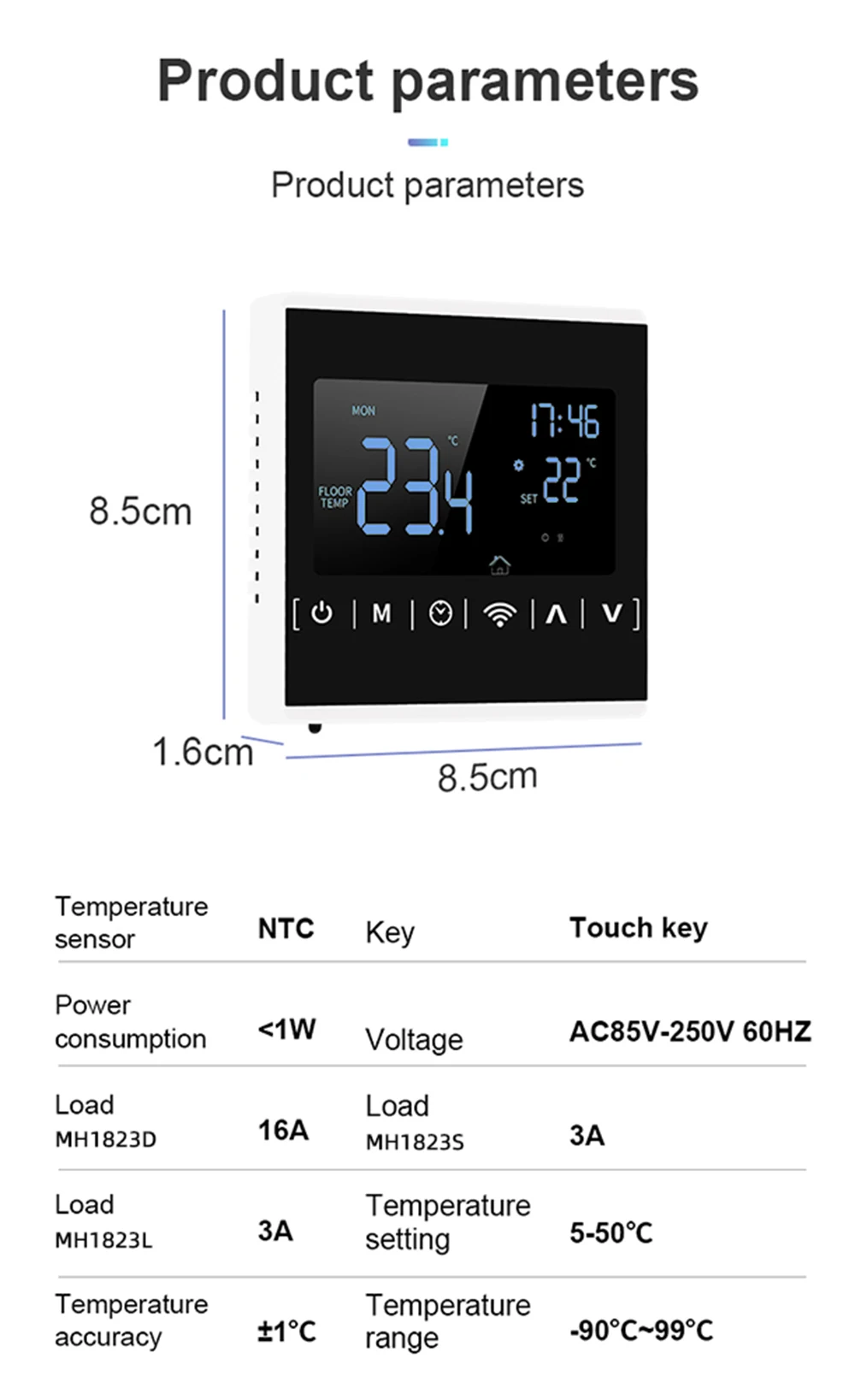 85-250 В Форма корабля Россия 110 В 220 в сенсорный экран черный Задний светильник программируемый термостат теплый пол регулятор температуры WIFI