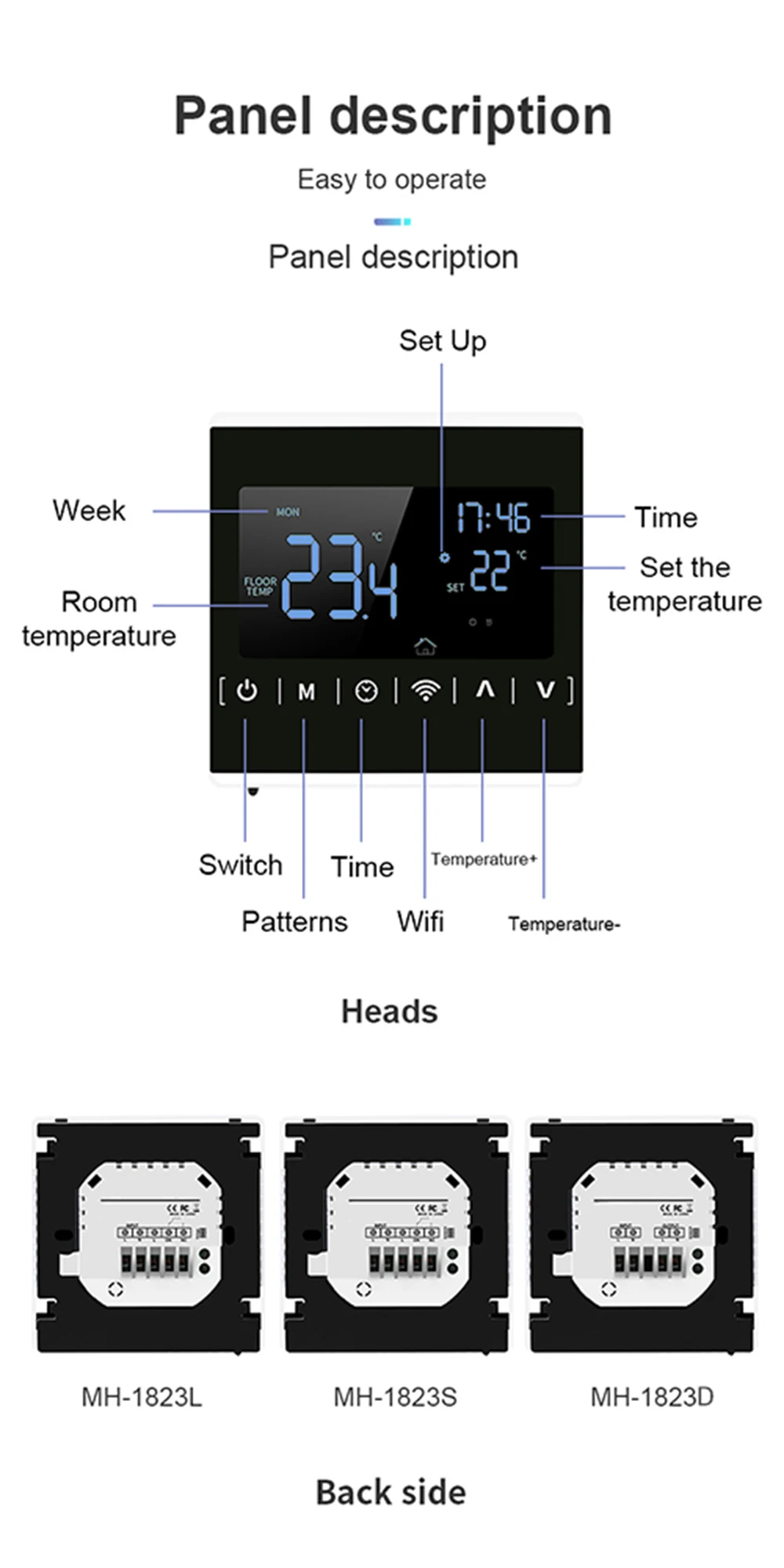 Инструкции про настройки нету в комплекте, долго понимал как зайти в меню настроек. На выключенном датчике зажимаем стрелочки и ждём 5сек. , переключаем кнопкой М до 3. там выбираем тип датчика, первый это комнатная t, второй датчик выносной, третий и то и то. ещё можно программировать дни недели , так же выкл. датчик зажимаем часики и М. имейте в виду он в обычный подразетник не влезет , придётся что то придумывать.