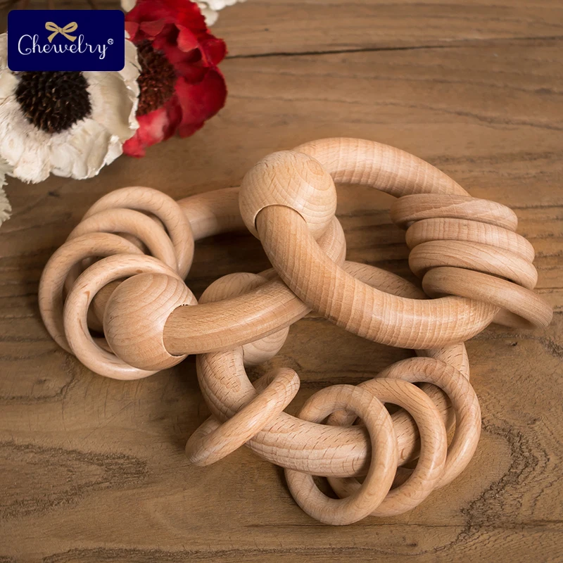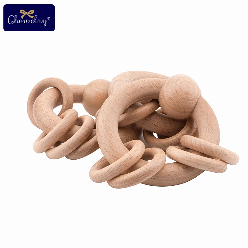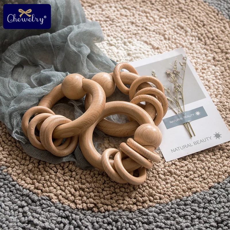 80 мм деревянные детские погремушки буковая деревянная круглая ручка Монтессори искусственное деревянное кольцо для игр в тренажерном зале Детская жевательная коляска необходимые игрушки