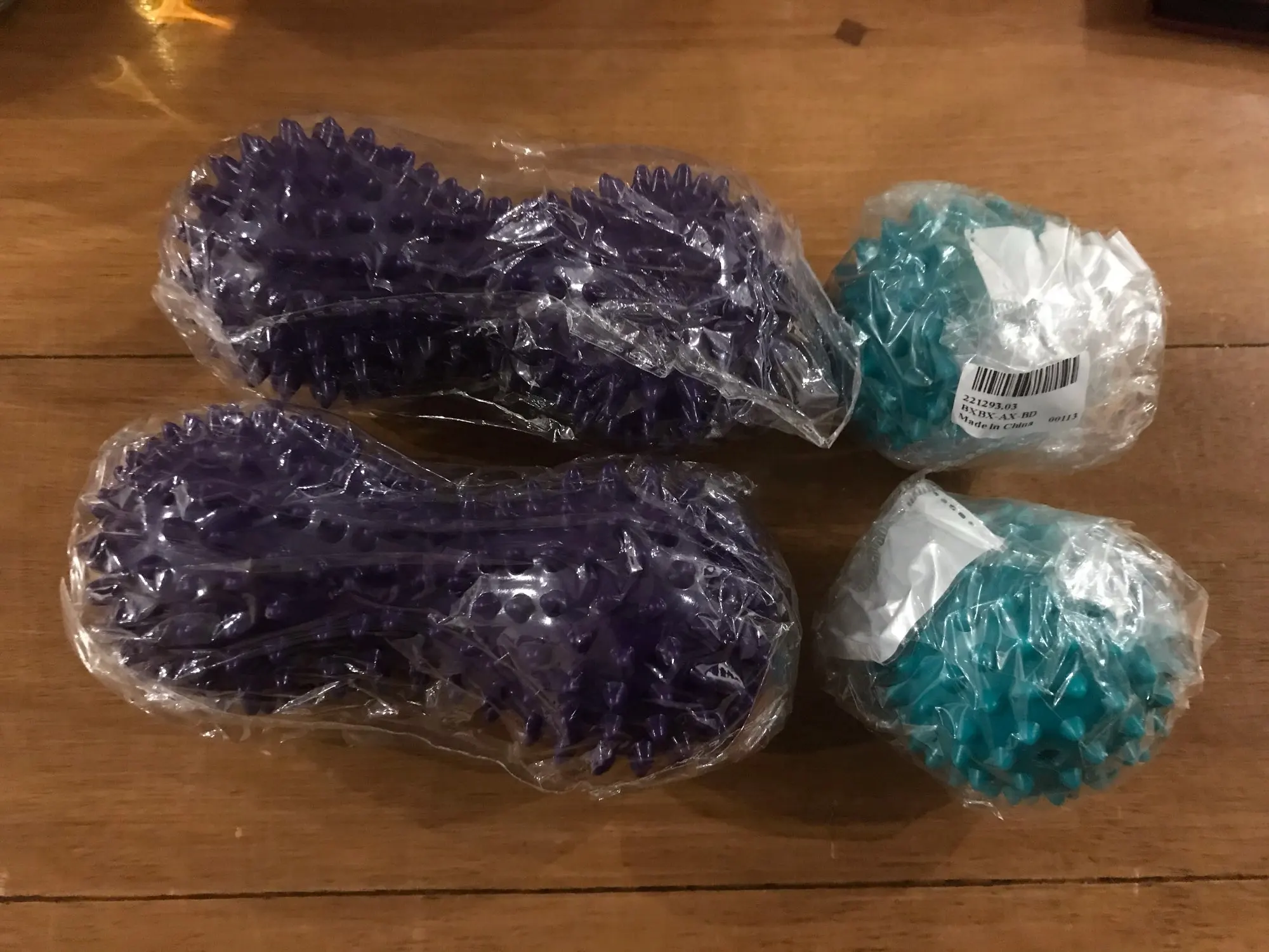 Как указано в описании, он сделан из ПВХ, поэтому шипы твердые. Он не сделан из резины, поэтому трудно помочь с жесткими узлами.