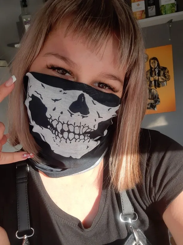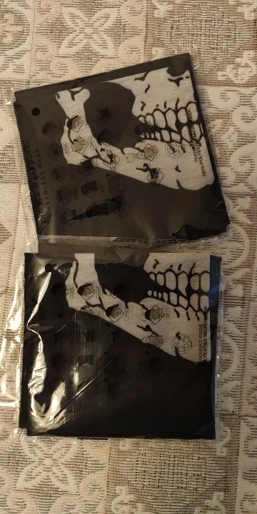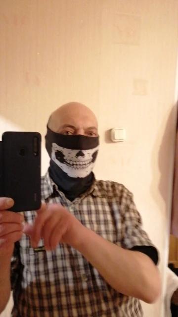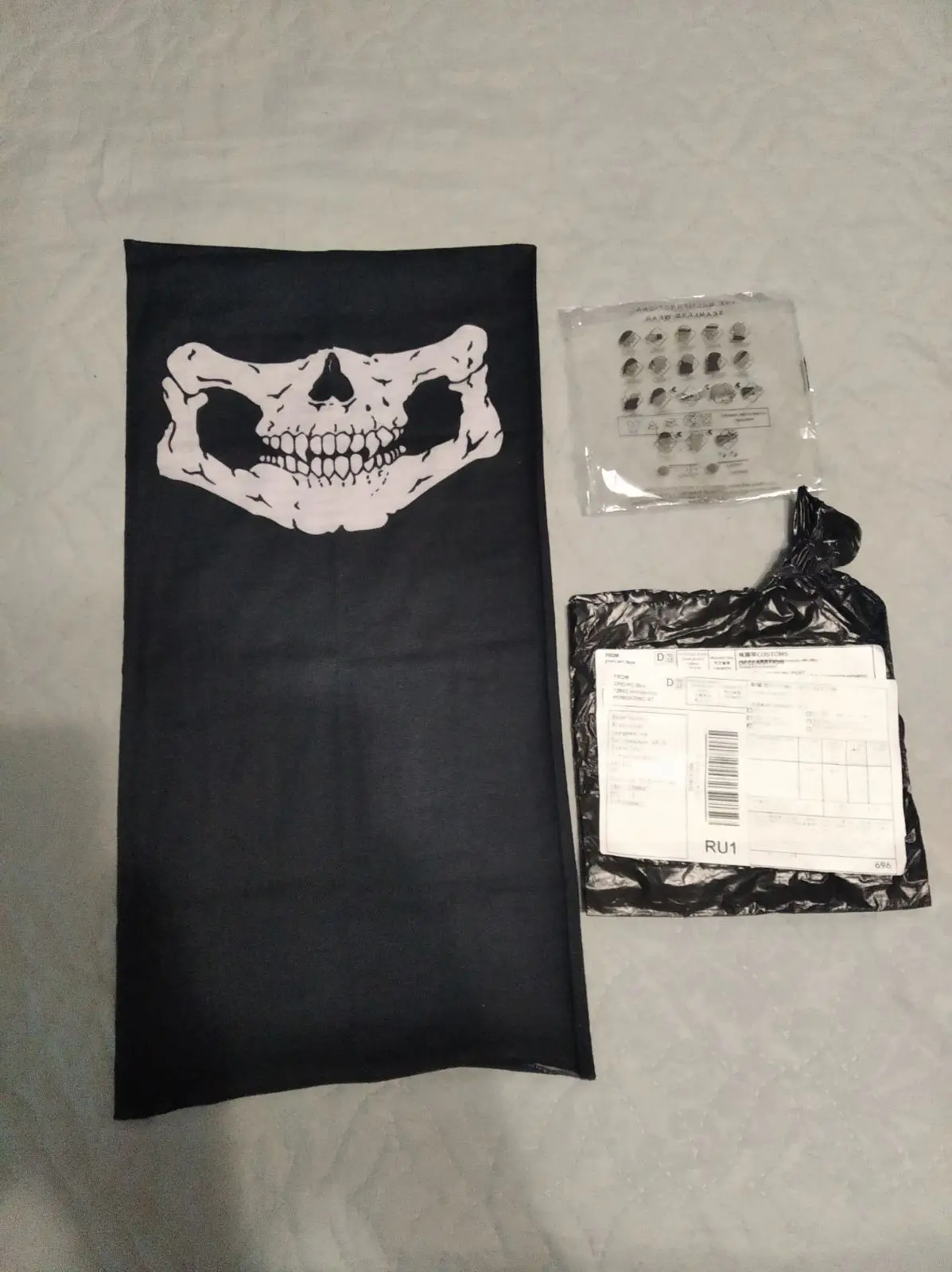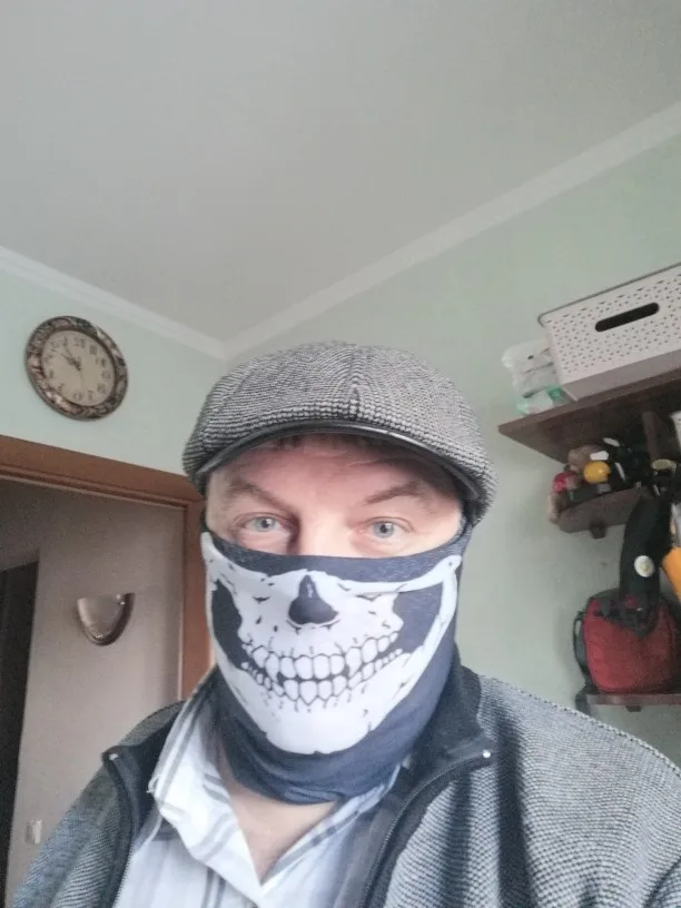 отправка быстрая и до границы Беларуськой тоже,,но на таможне продержали два месяца,,получил то что и ожидал по такой цене,меня устраивает,на любой череп натянется,такие вещи сделать самому в два щета можно,обрезав колошину термо белья и разрисовать маркером.бродавцу благодарность !