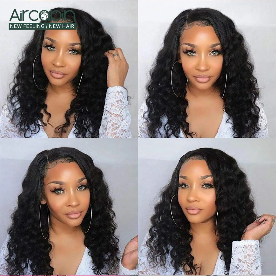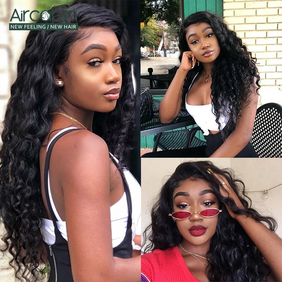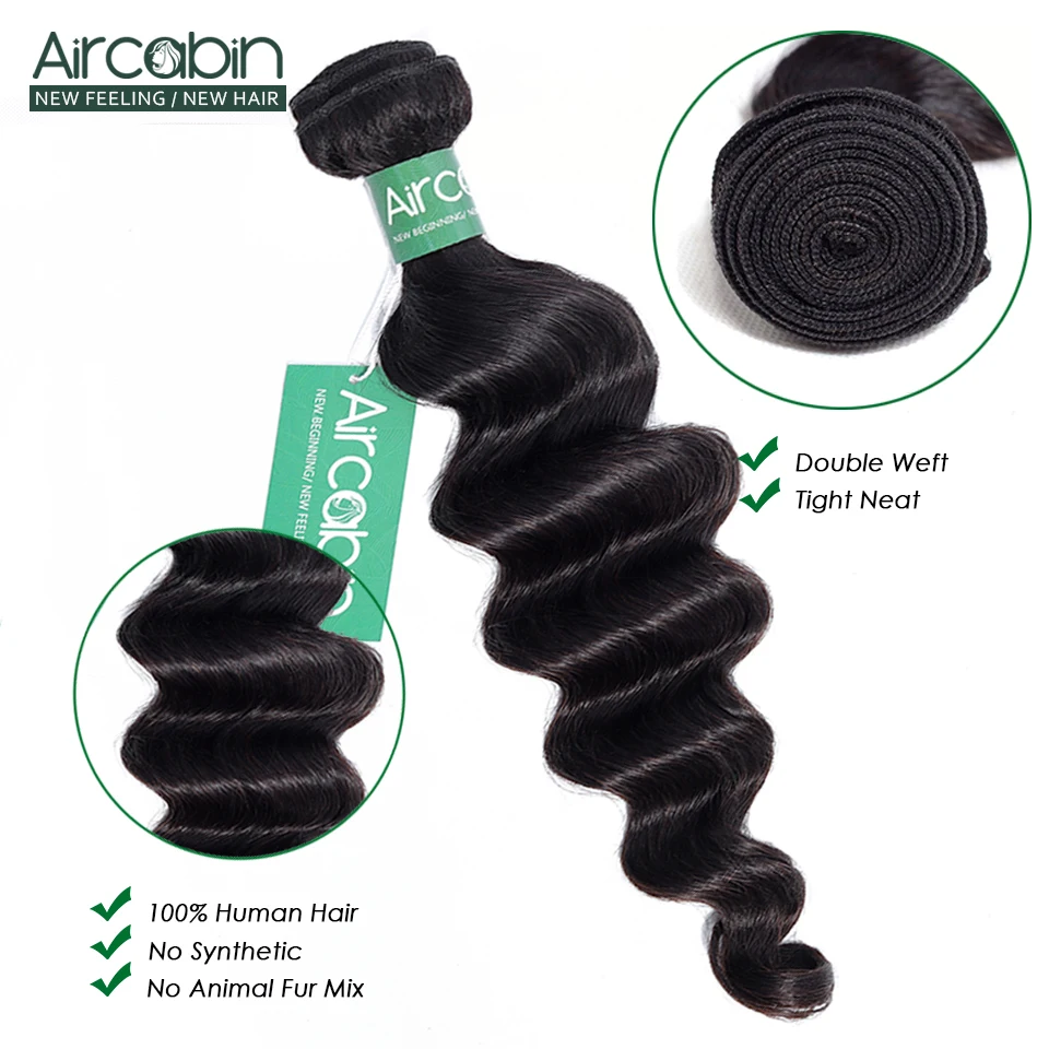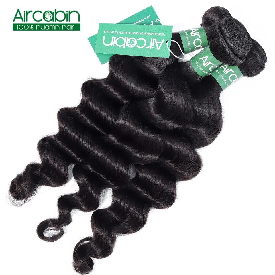 Aircabin свободные глубокая волна пряди с закрытием бразильские Remy пряди натуральные кудрявые пучки волос пряди с закрытием кружева 34 пряди с закрытием