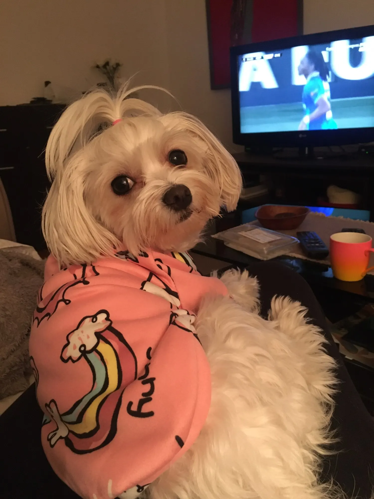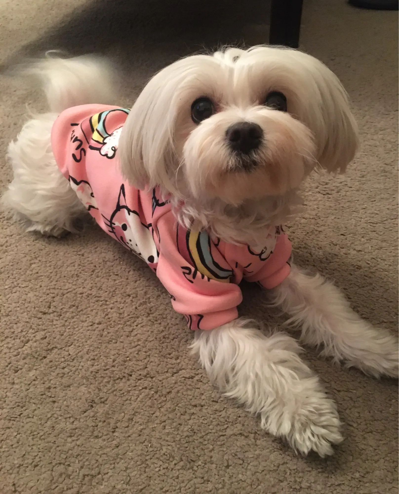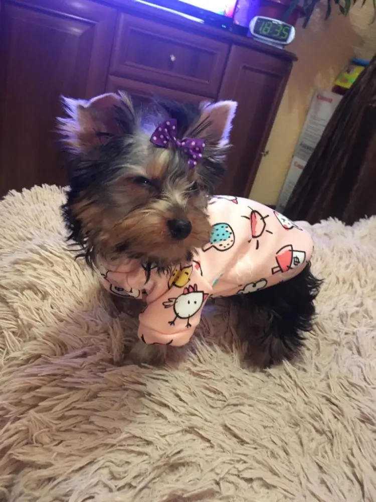 Хорошая кофта, с небольшим ворсом. Цвет просто бомбезный! На йорка размером XS взяла S и не ошиблась! Кофта села идеально! До Челябинска пришло за 3 недели. Собака бегает, радуется. Спасибо продавцу за то, что ничего не перепутал!