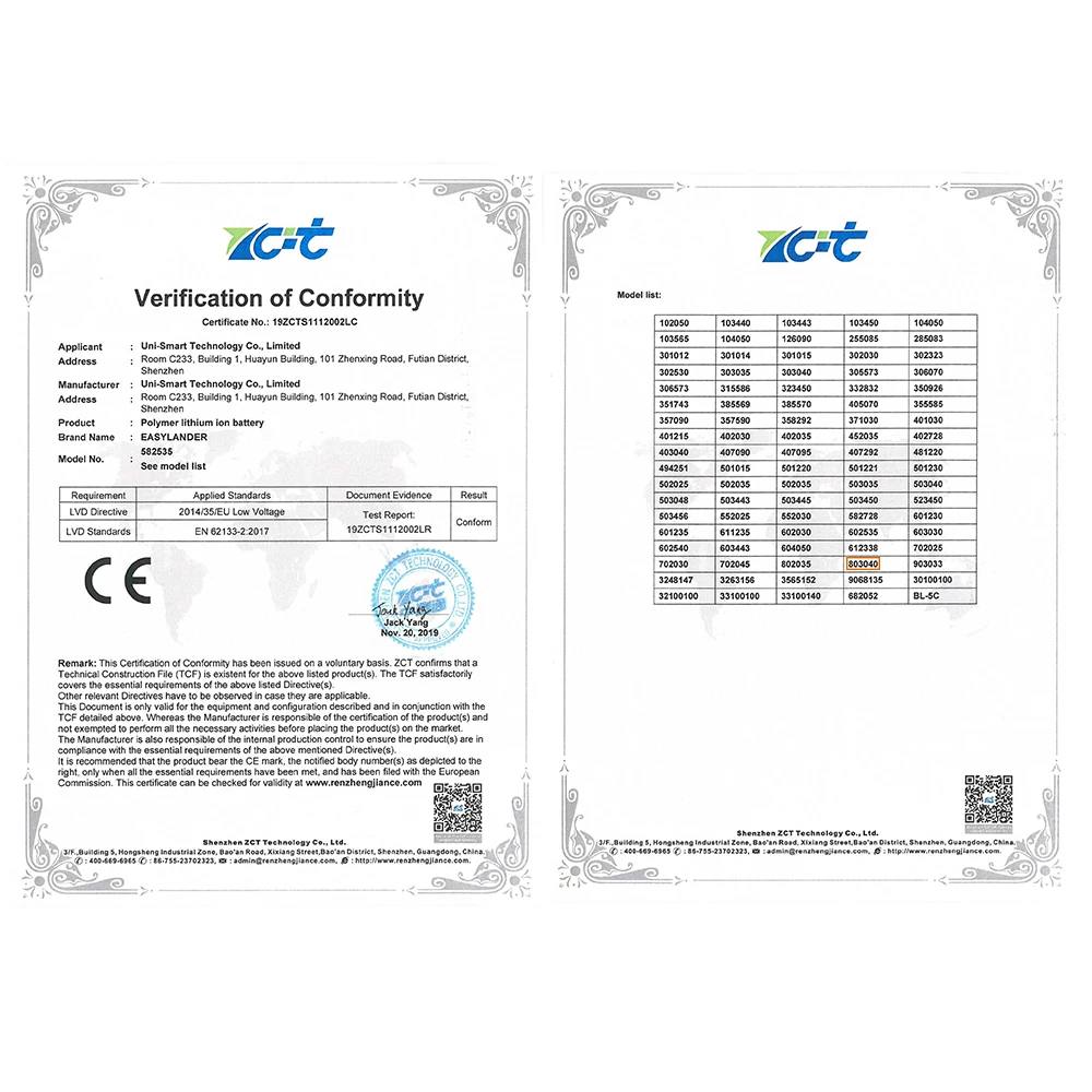 Номер модели3.7v battery 803040
