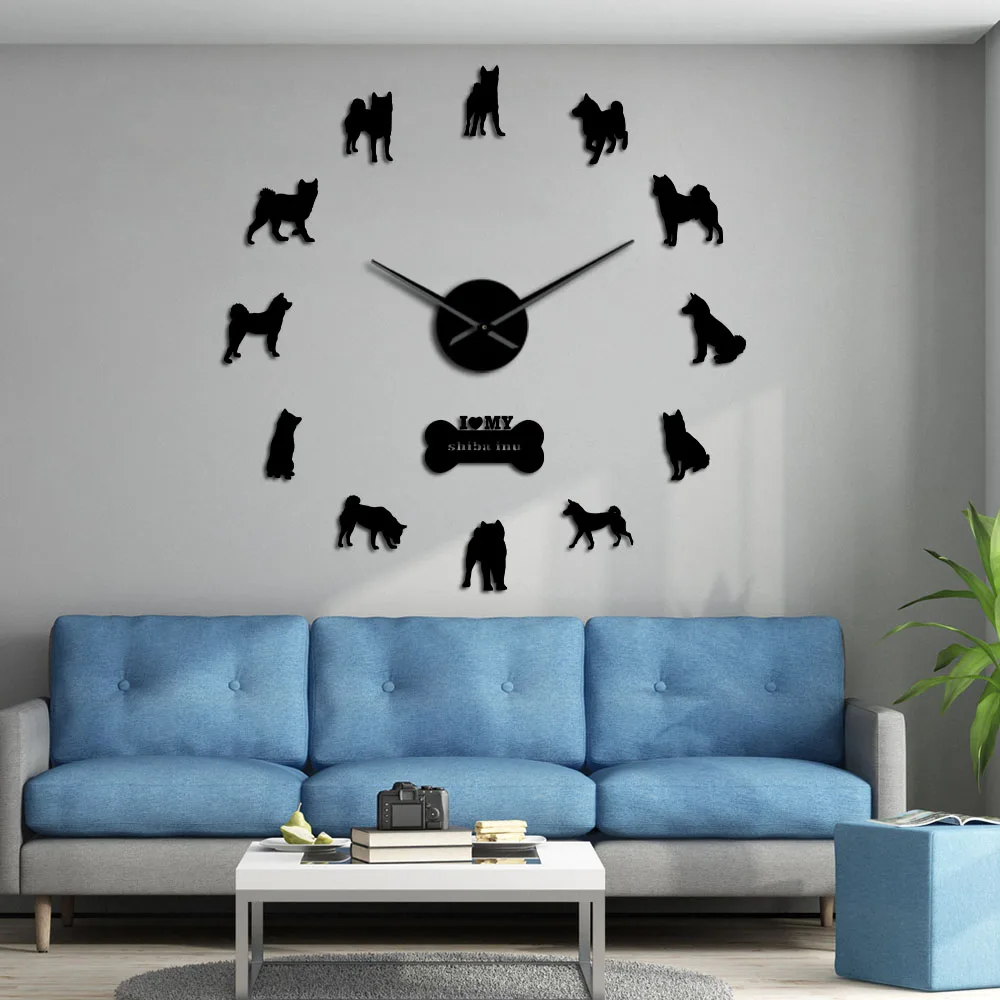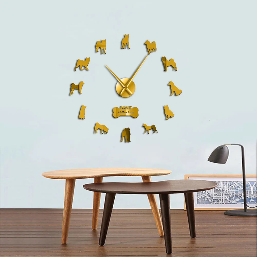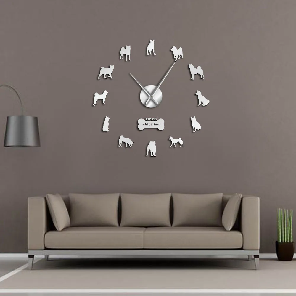 Японские Шиба ину Собака Декоративные Современные настенные часы Шиба Кен собака порода рамка большие настенные часы с DIY Arylic зеркальные наклейки