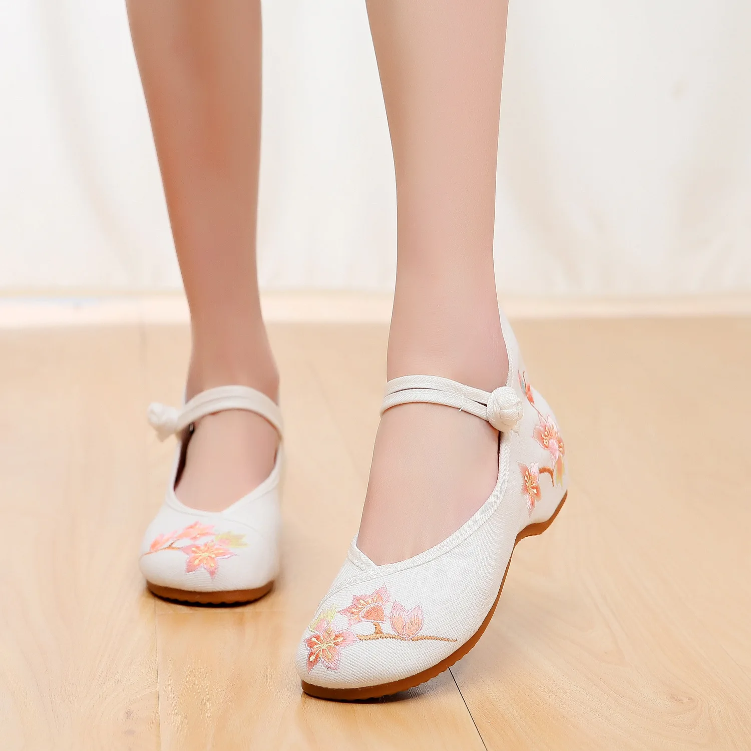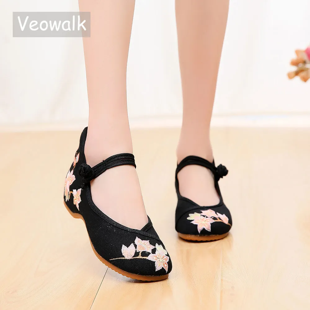 Женские парусиновые балетки Veowalk, Элегантные повседневные хлопковые туфли на плоской подошве с цветочной вышивкой, с ремешком на щиколотке