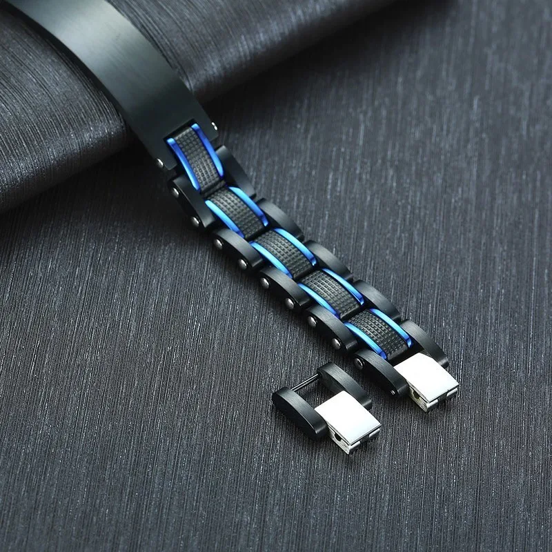 Мужские тяжелые браслеты из нержавеющей стали 316L в стиле панк, Бесплатная Персонализированная гравировка ID, браслет на запястье, черная цепочка с синими линиями