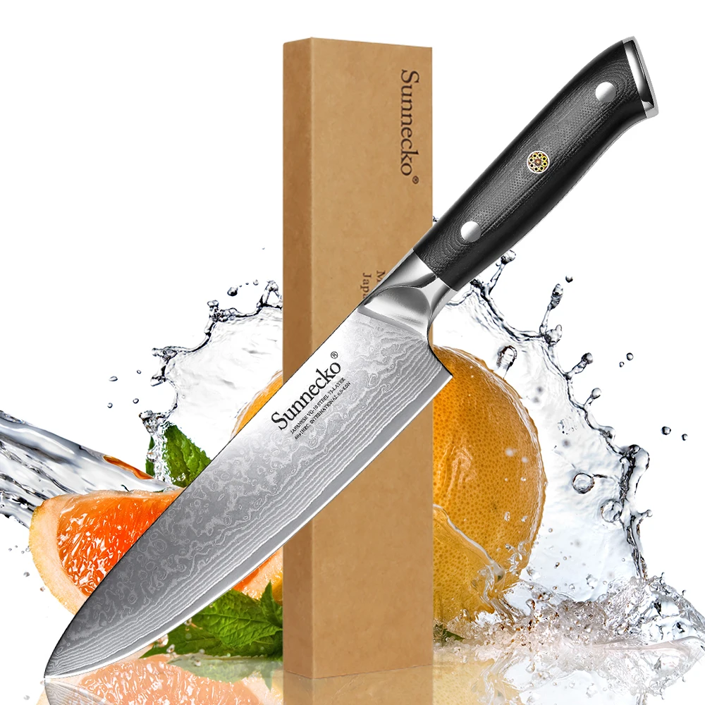 Нож шеф-повара SUNNCEKO VG10, японские кухонные ножи 8 дюймов из дамасской стали, острое лезвие 73 слоя, рукоятка из G10, 60HRC
