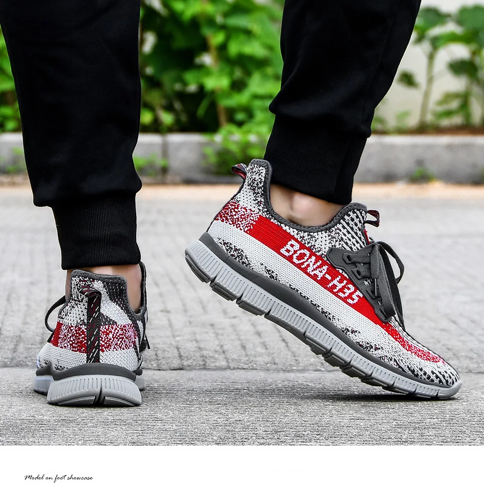 Мужские кроссовки BONA, дышащие, повседневные, Нескользящие, с вулканизированной подошвой, с воздушной сеткой, износостойкие, 2019