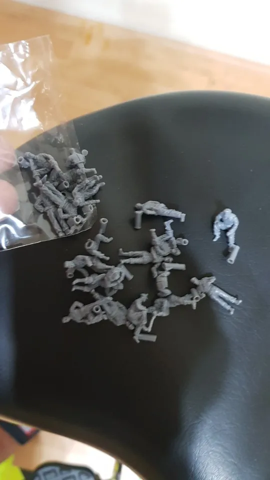 Я получил 18 вместо 12, что стало приятным сюрпризом, который пришел как кольцо на палец, так как у него было несколько автомобилей, чтобы прикрепить их, они немного меньше, чем фигура по сравнению с Italieri, но это хорошая вещь, потому что они лучше вставляются в люки и сиденья. Конечно rexomendables.