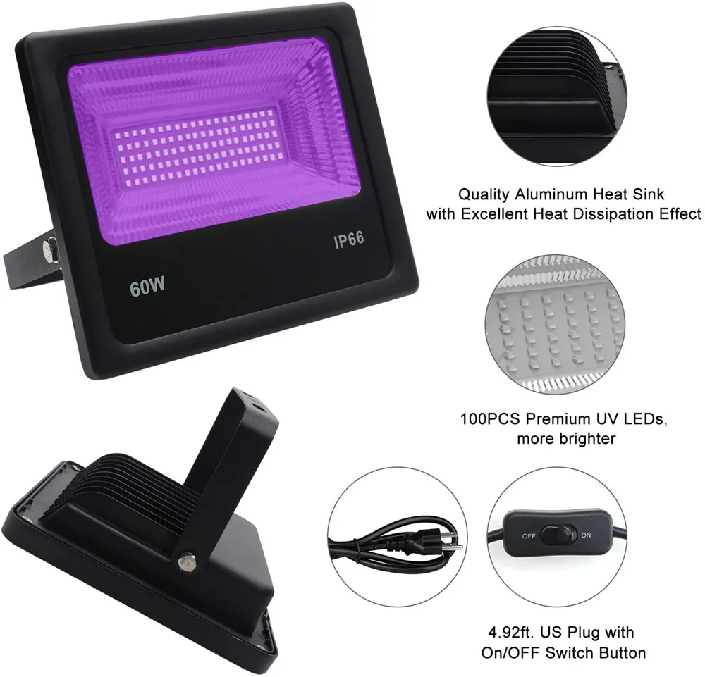 УФ светодиодный прожектор 30 Вт 60 Вт, Ультрафиолетовый светодиодный черный светильник с переключателем ВКЛ.ВЫКЛ., AC85-265V IP66, водонепроницаемый сценисветильник ильник для диджея, дискотеки, вечеринки