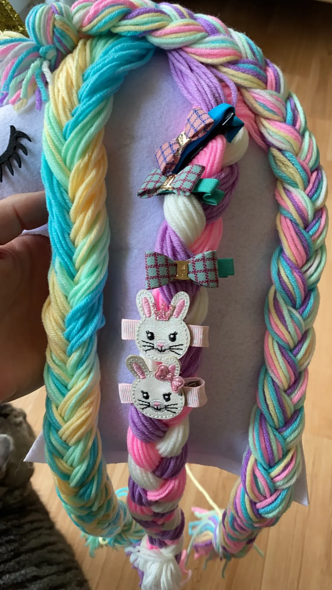 Он восхитительный!!! Мягкий, красивый, аккуратно сделан! Пришёл за 2,5 недели в Германию. Дочь рада. А я ещё больше - все заколки теперь в одном месте, а не по всему дому. Плюс, отличное украшение для детской комнаты. И тренажёр для заплетается косичек. Супер! Спасибо!