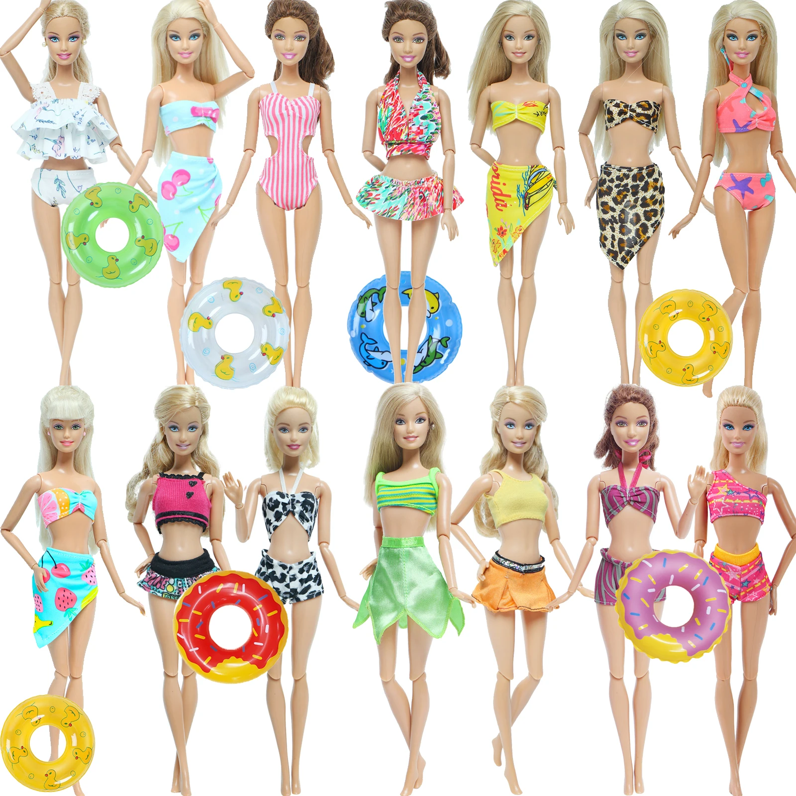 Набор из купальники для кукол + случайных спасательных кругов, купальников, бикини, пляжных аксессуаров для кукол Барби