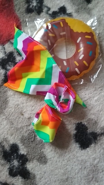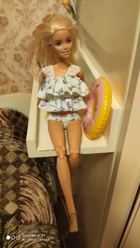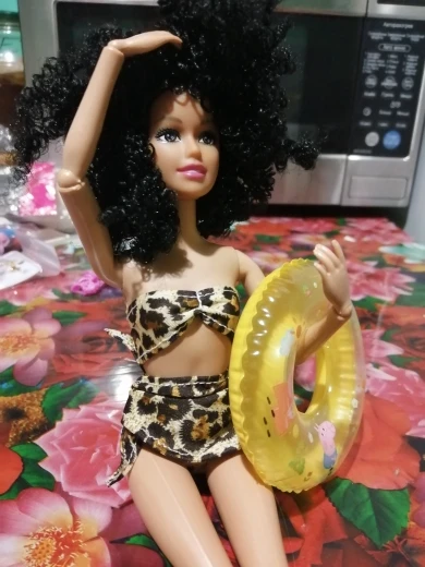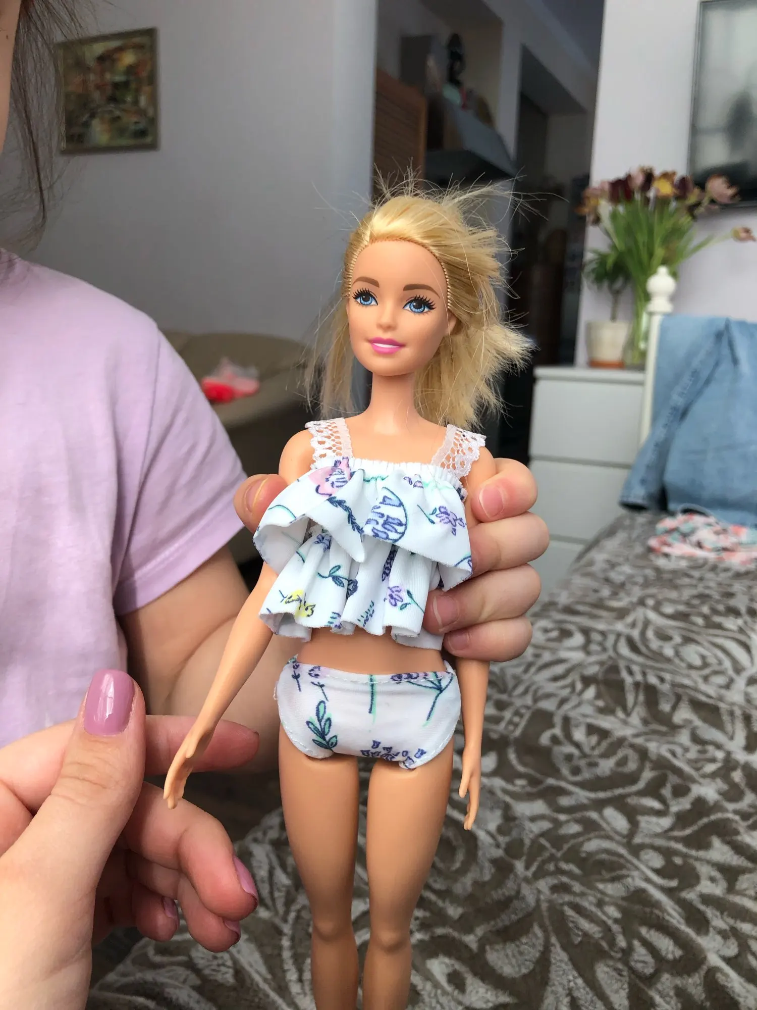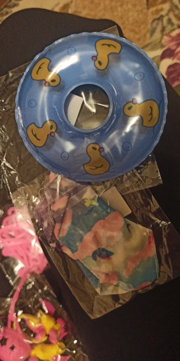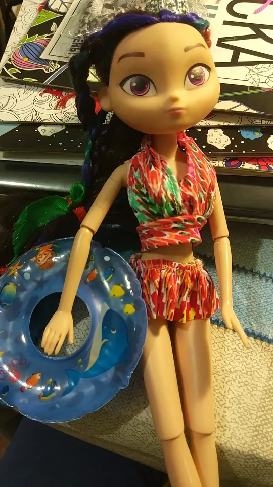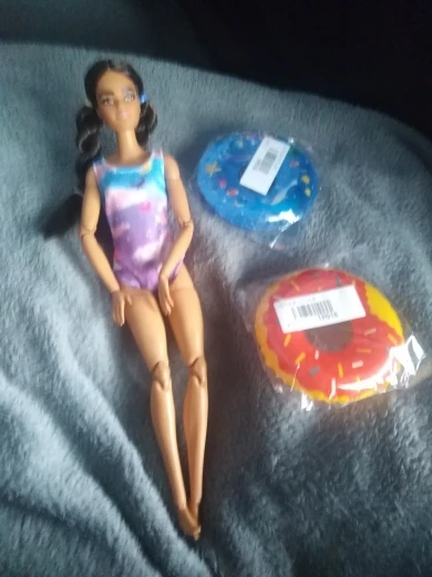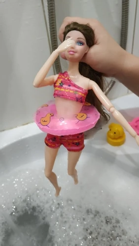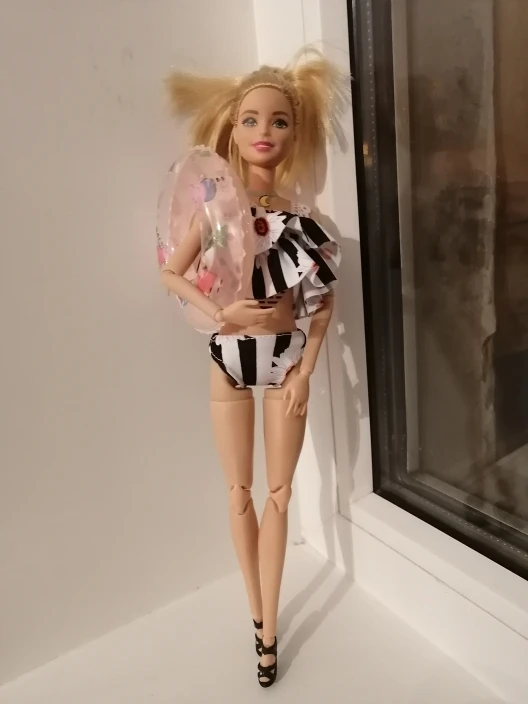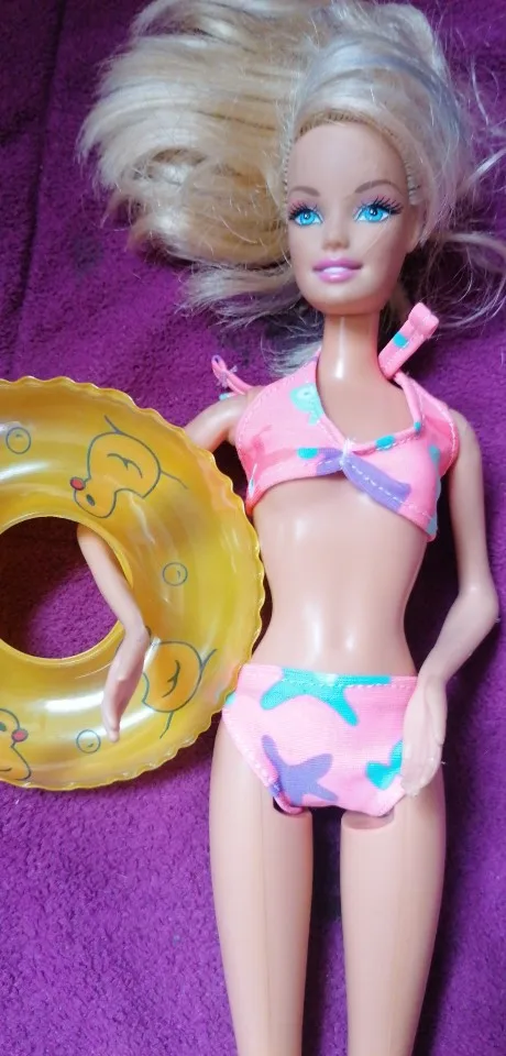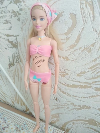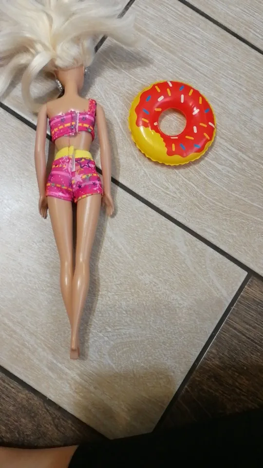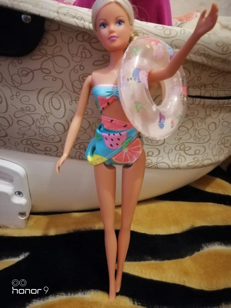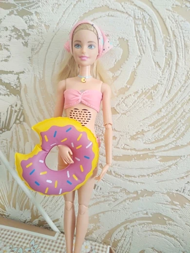 Купальник хорошо подошёл на куклу Barbie. Круг пришёл надутый, через несколько дней спустил