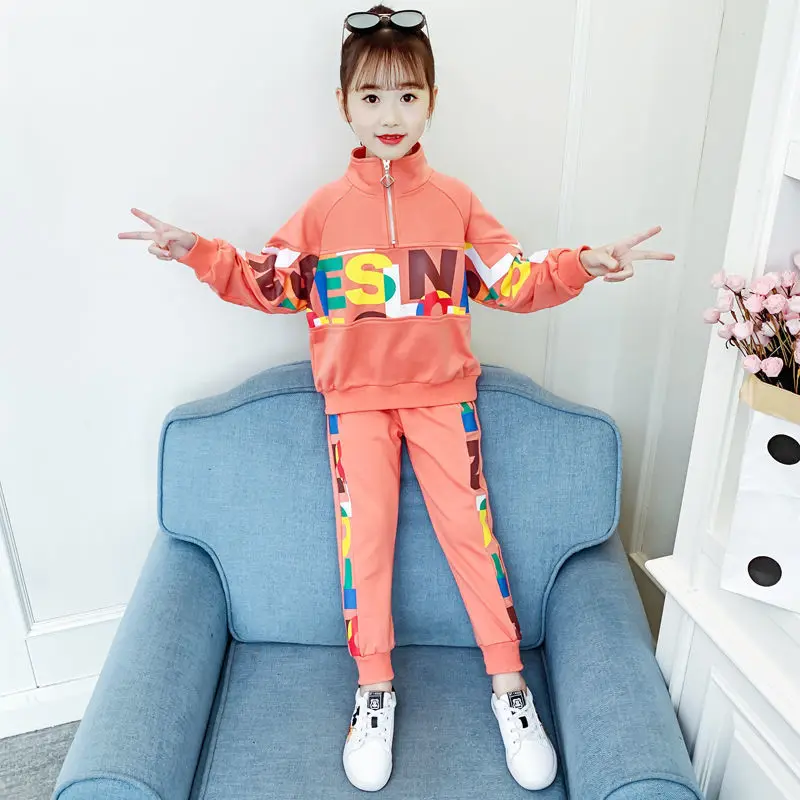 Спортивный костюм для девочек, кофта на молнии и штаны, карнавальный спортивный костюм для девочек, осень 2019