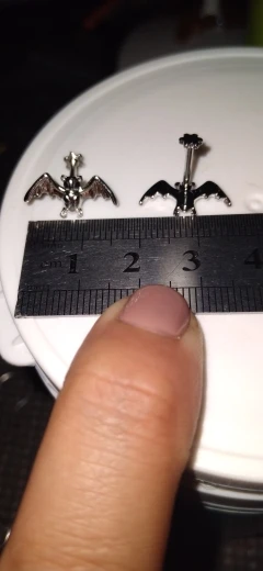 Very cute bat labret. exactly as shown in the images of the seller and delivery took some time but still, would say the quality is good. I will leave additional feedback once I wear this more often to see if rusts or blackens.