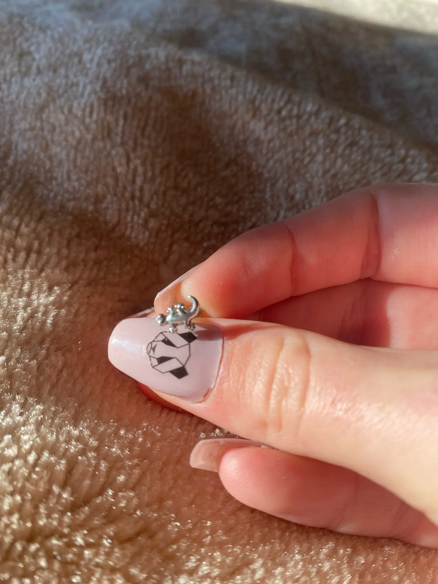 Точно как в описании ^,..,^ Единственная проблема - не очень удобно закручивать штифт. Но это с непривычки, как и с любым пирсингом.