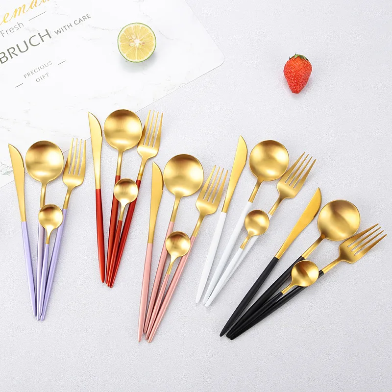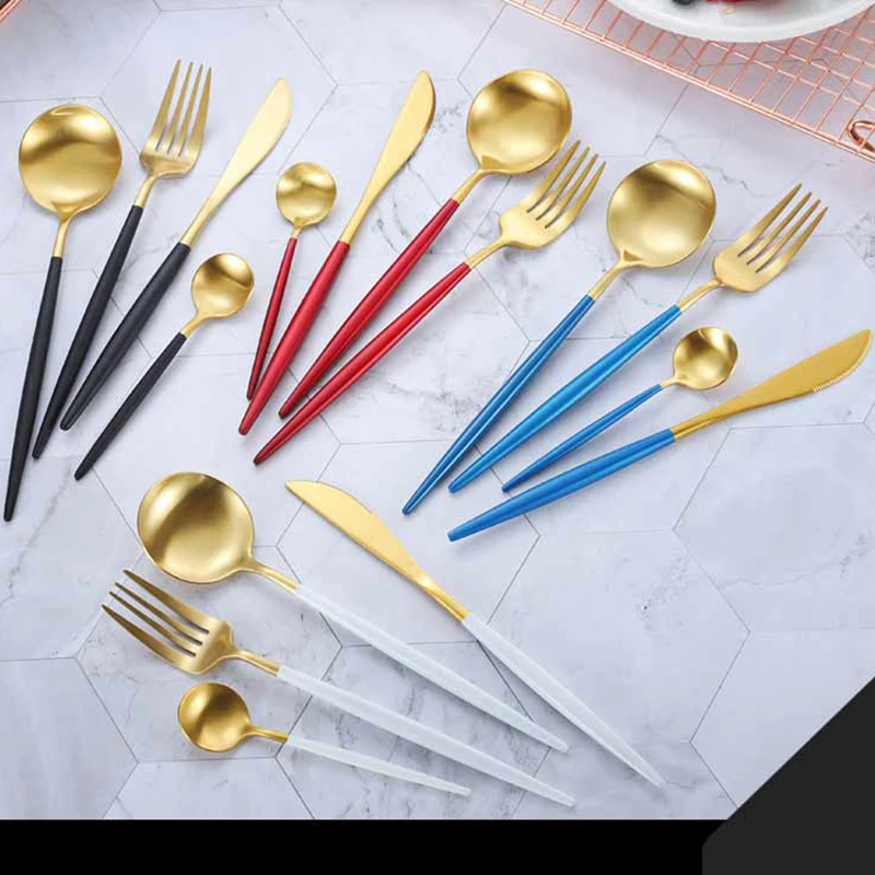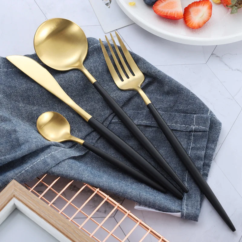 Набор из 4 предметов 1810, матовая толстая нержавеющая сталь, западные столовые приборы, золотой черный серебряный столовый нож, столовая ложка, столовая вилка, набор кофейных ложек, подходит для посудомоечной машины