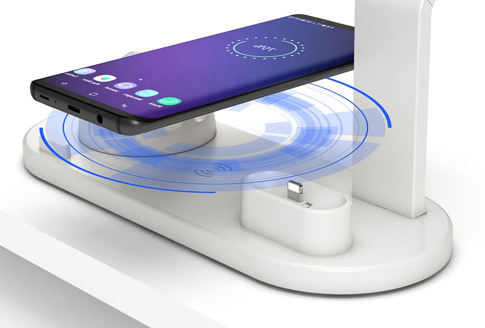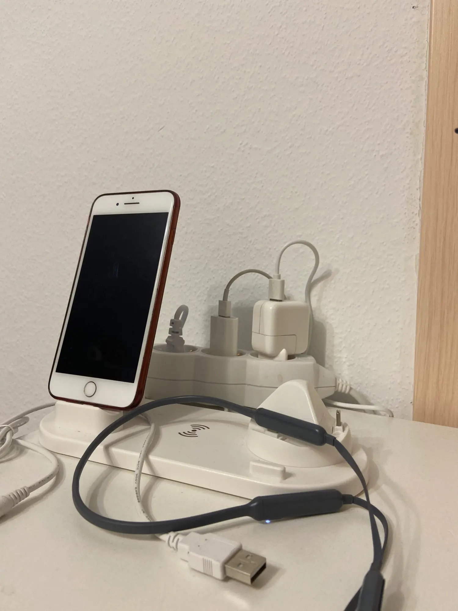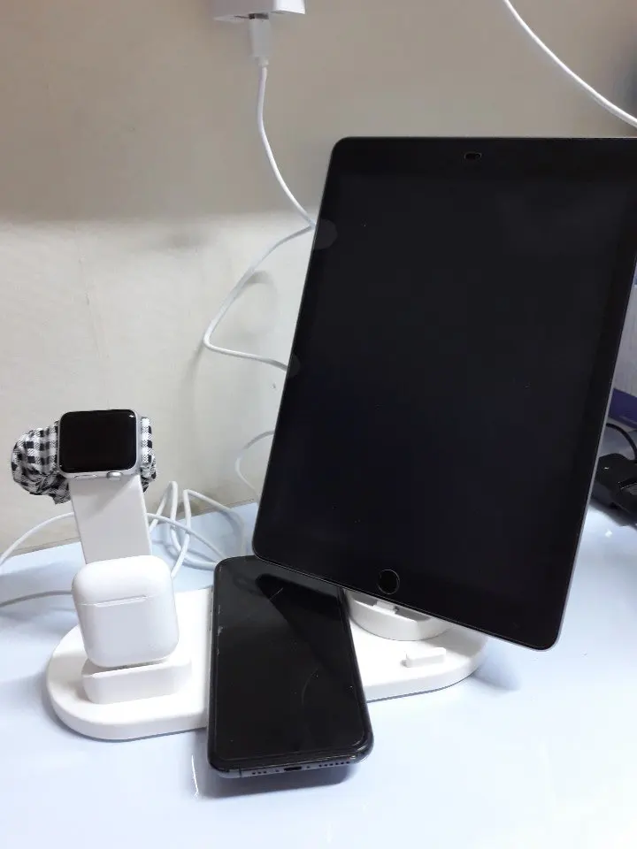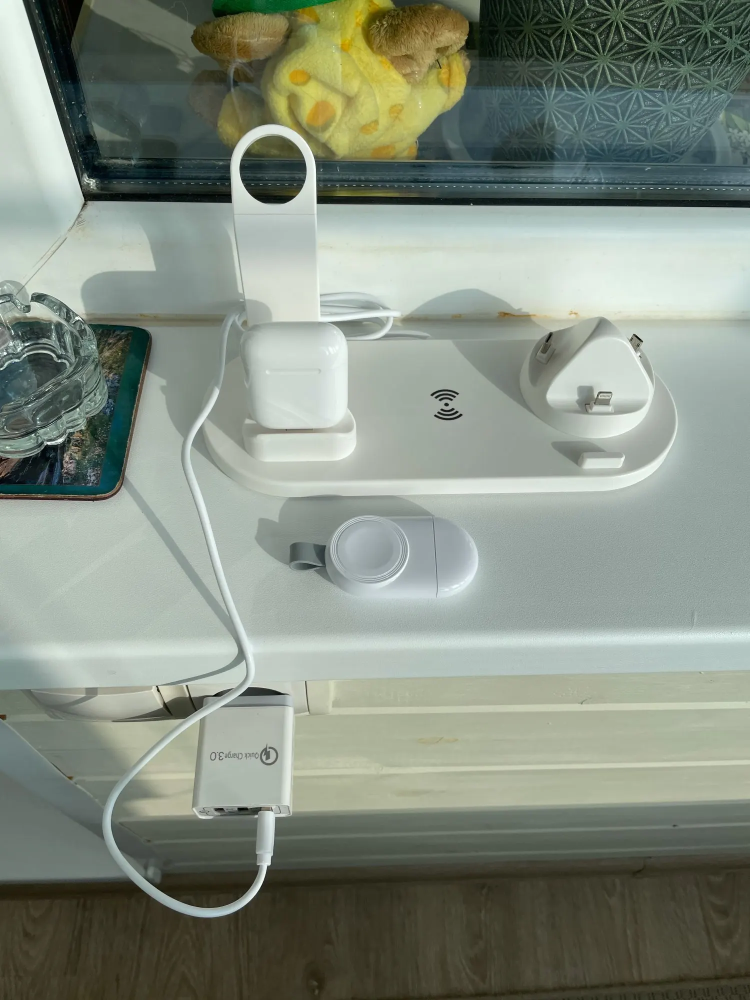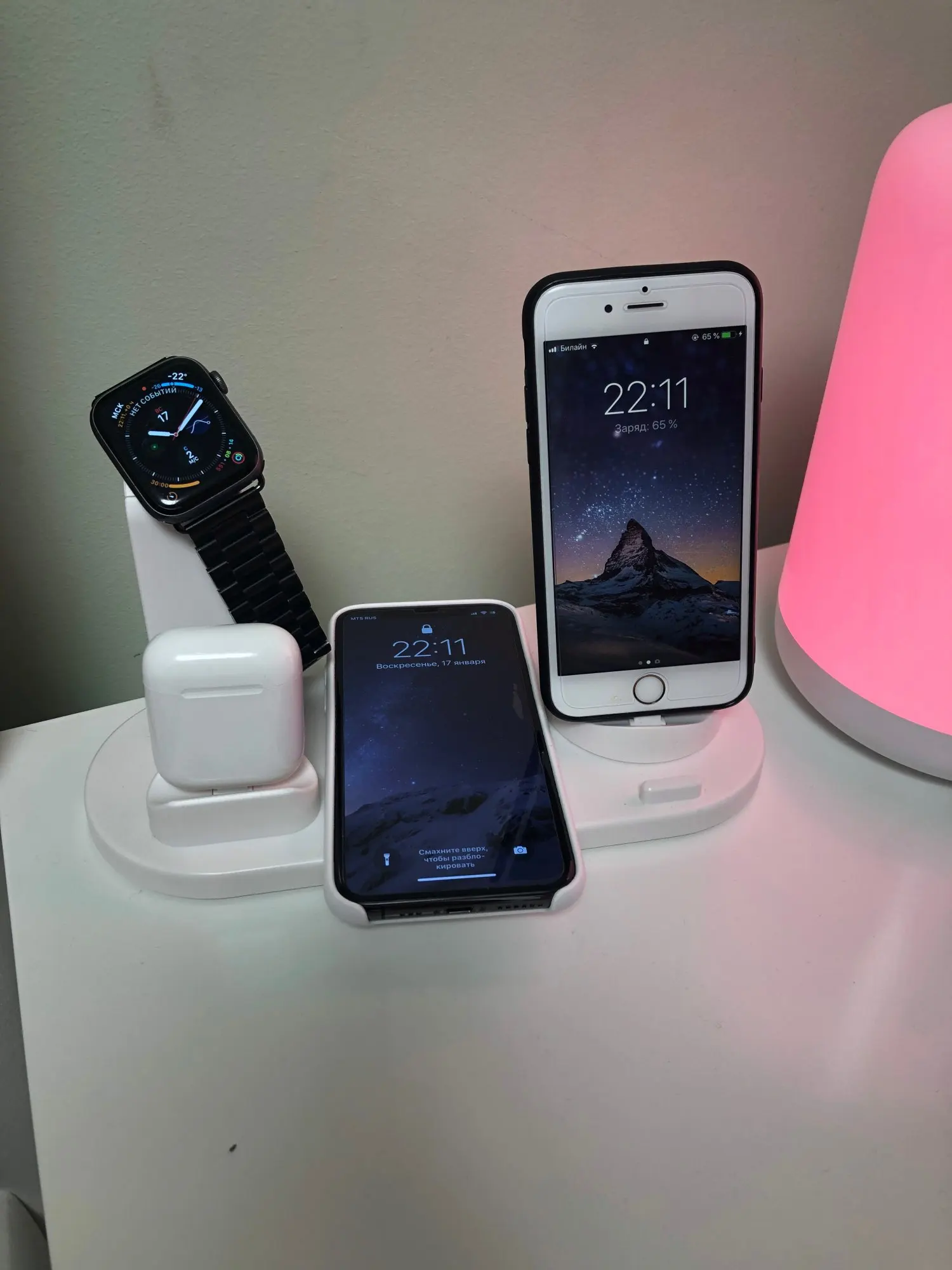 Удобная зарядная станция, одно НО, приблизительно через минуту перестаёт заряжать беспроводная зарядка. Станция питается от блока в комплекте, iPhone XR лежит на зарядке 1.