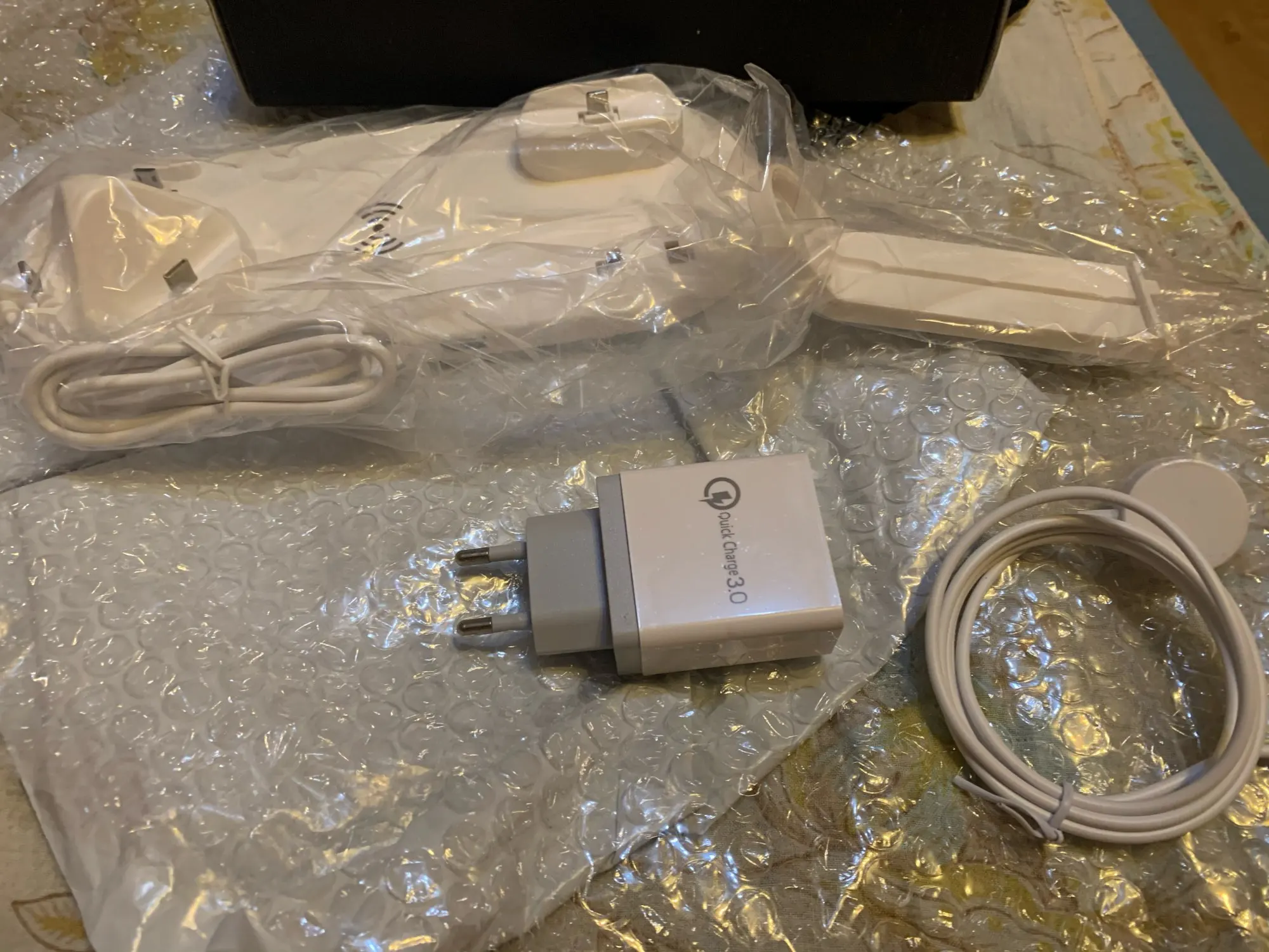 Доставка быстрая - две недели, все упаковано круто, никаких повреждений. Болтается все, конечно, хлипкое, плюс пластик пачкается, но за такие деньги это ерунда, главное все работает, заряжает медленно, но если оставить на ночь, то супер. Единственное, один адаптер совсем для древнего андроида, хотелось бы микроusb, но его нет, ну что же ничего страшного, можно будет попробовать самому сделать