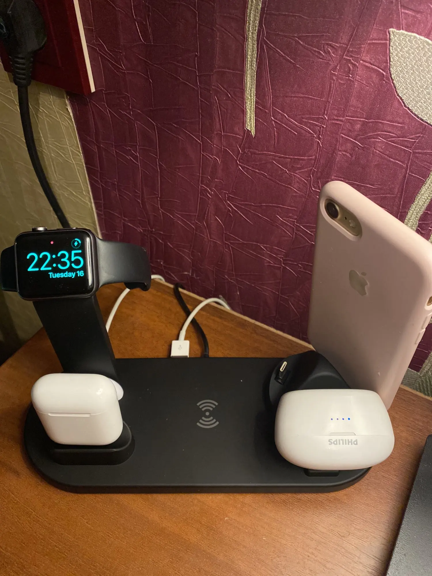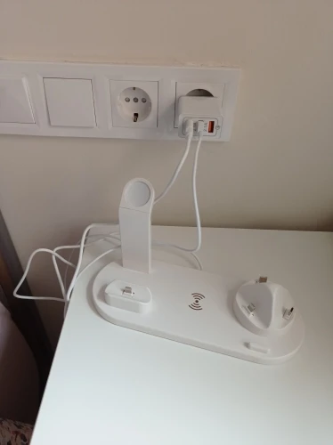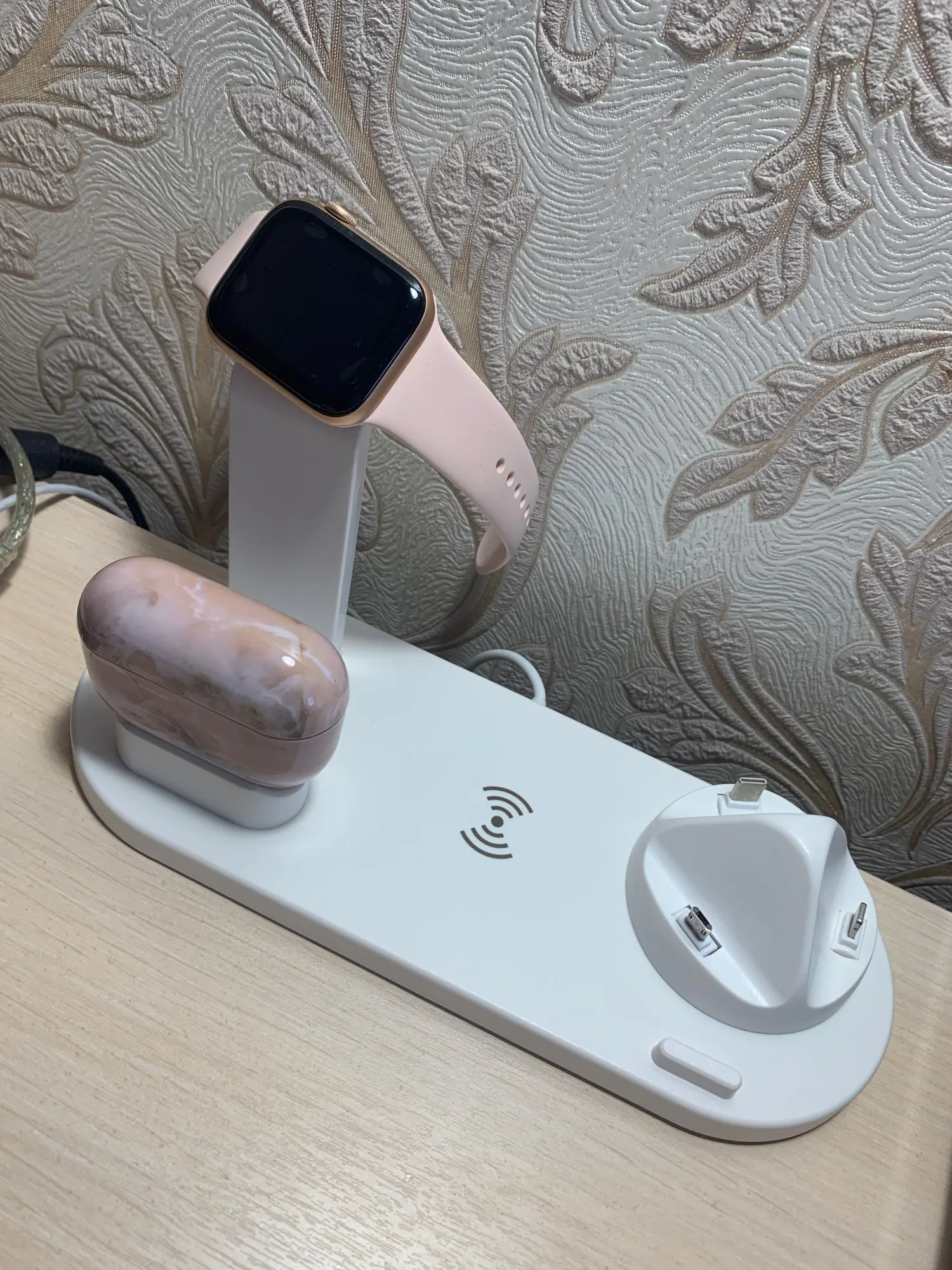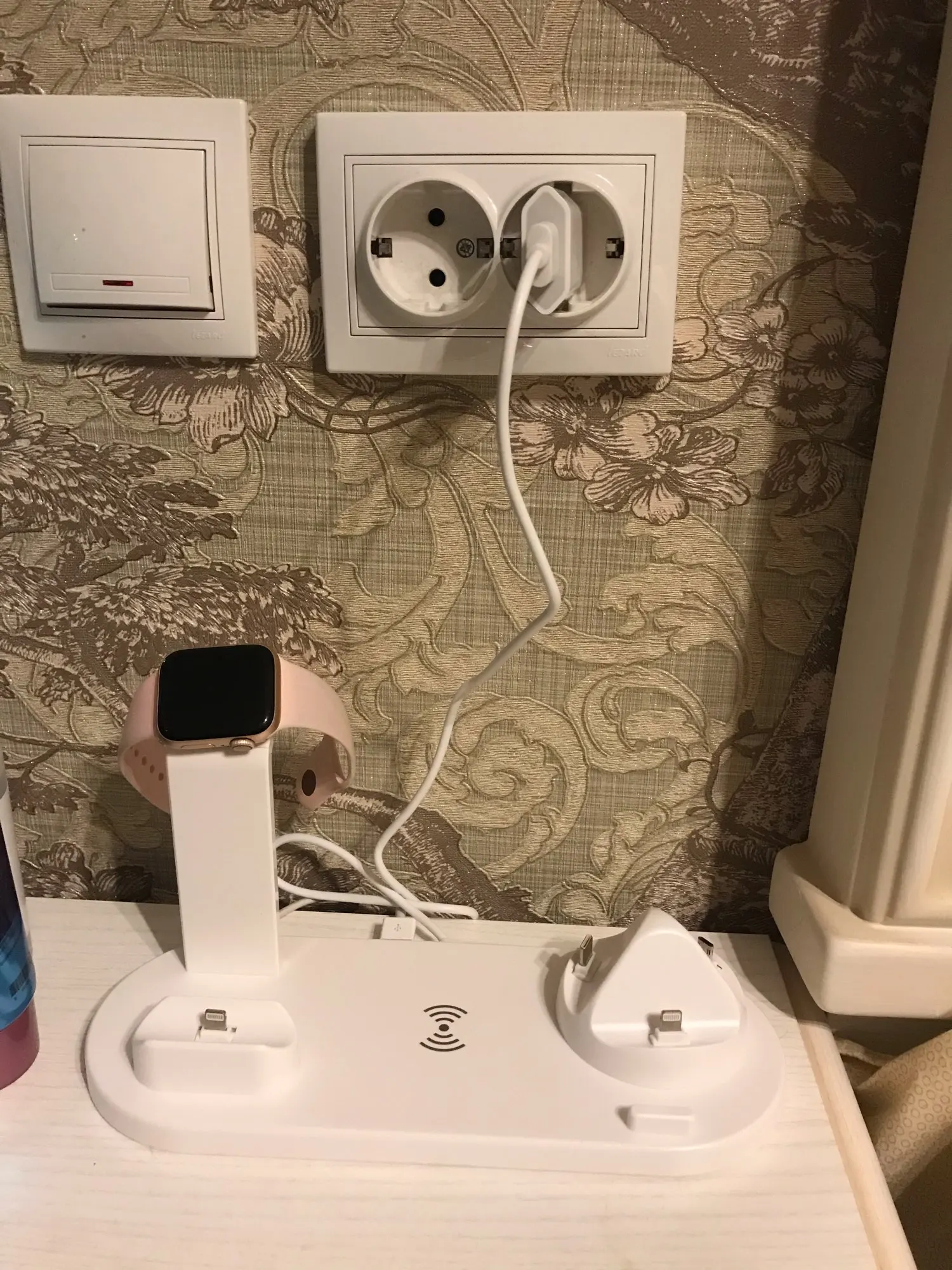 Все работает, часы нормально держатся, жаль что провод нужно для часов подводить дополнительно, хотелось максимально от них избавиться. Очень довольна покупкой, теперь все аккуратно заряжается. Можно сразу много девайсов. Беспроводная зарядка хорошо работает.